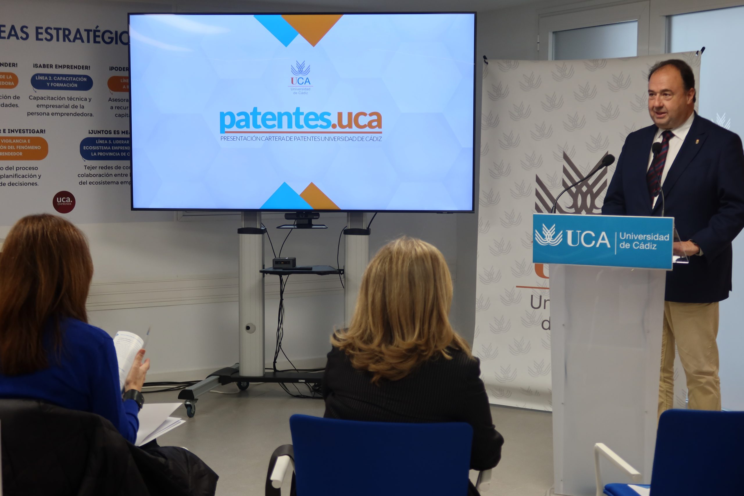 La Universidad de Cádiz se consolida como un referente nacional en transferencia de conocimiento, tal y como se ha puesto de manifiesto en la presentación en la mañana de hoy de su ‘Cartera de Patentes’. El acto, presidido por el rector de la UCA, Casimiro Mantell, quien estuvo acompañado de la delegada territorial de Desarrollo Educativo y Formación Profesional y de Universidad, Investigación e Innovación en Cádiz, Isabel Paredes, y las vicerrectoras de Investigación y Transferencia, María Jesús Ortega, y Emprendimiento y Empleabilidad, Carmen Camelo, ha destacado la intensa labor de investigación e innovación que se desarrolla en la institución, así como su compromiso por trasladar los resultados a la sociedad.