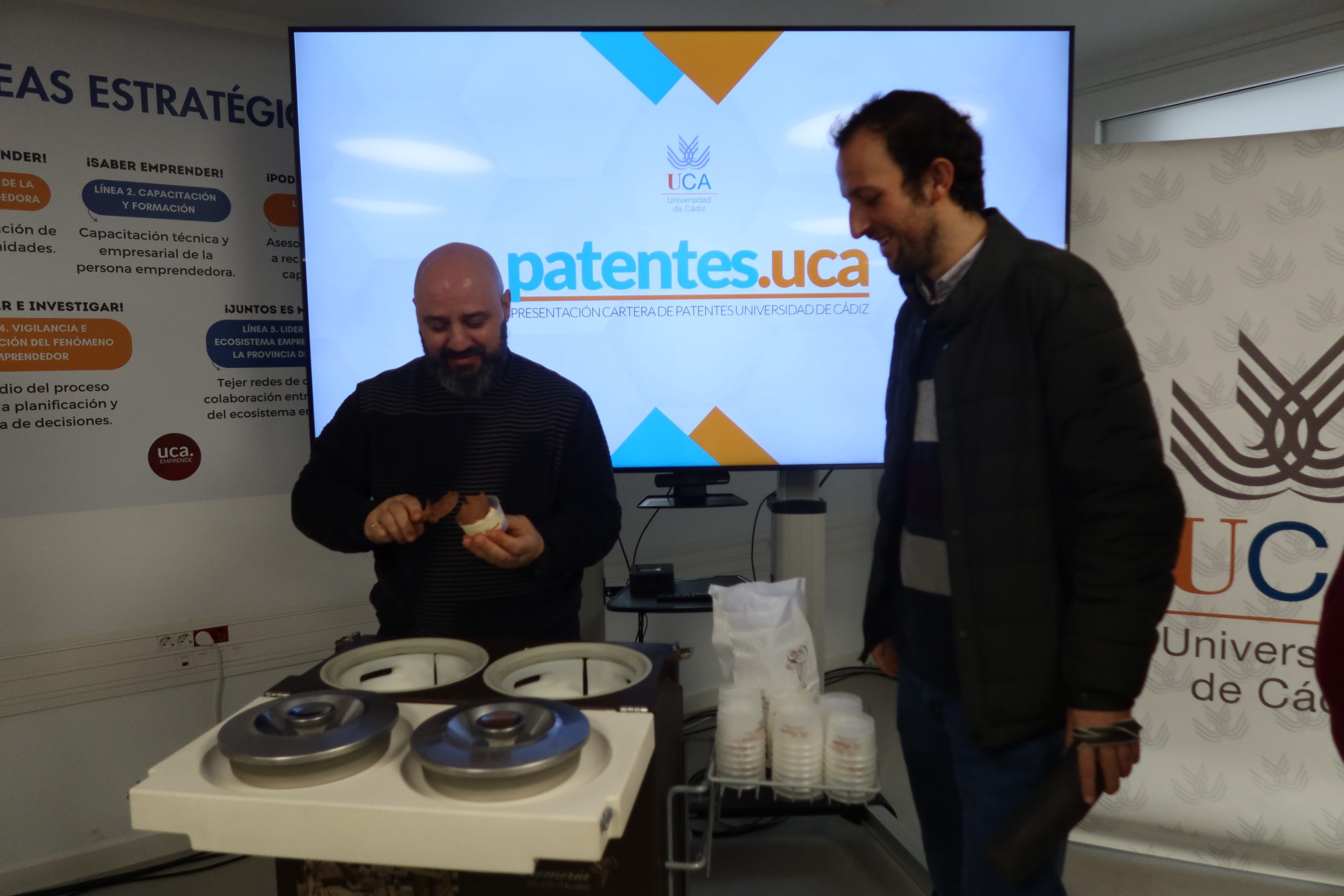 En esta línea, a lo largo de este acto, se dieron a conocer algunos ejemplos de patentes registradas por la UCA que han impactado de alguna forma en la sociedad. Una de ellas, presentada por uno de sus inventores, Carlo Guerriero, maestro heladero al frente de ‘La Cremeria’ y doctorando de la UCA, se centra en la elaboración de helados para personas con diabetes, a través de una nueva fórmula en la que se mezclan edulcorantes naturales, estabilizantes y fibra que permite elaborar helados aptos para el consumo de personas con patología. Esta patente no solo abre nuevas posibilidades para la industria alimentaria, sino que también mejora la calidad de vida de las personas que padecen esta enfermedad.