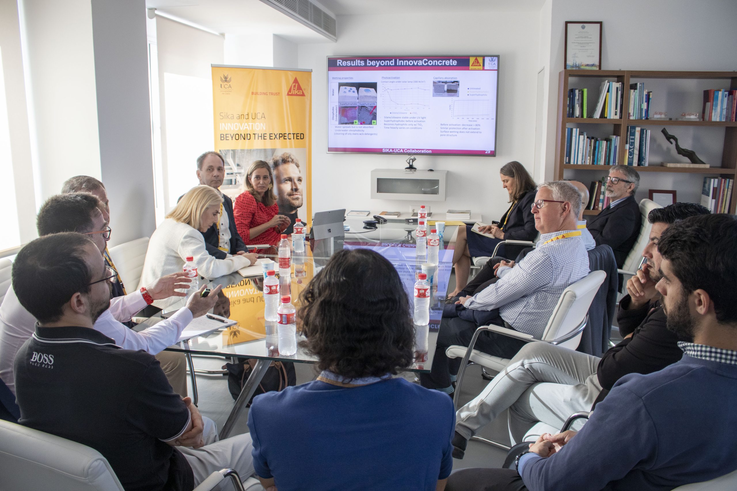 La asociación UCA-Sika se formó en el contexto de InnovaConcrete, un proyecto Horizonte 2020 del programa de financiación de la investigación y la innovación de la Unión Europea, liderado por la UCA, con la participación de hasta 29 socios de 11 países diferentes (entre ellos, Sika). Se centró en el desarrollo de técnicas innovadoras para la conservación del patrimonio monumental en hormigón del siglo XX y obtuvo el reconocimiento del Radar de Innovación, de la Comisión Europea. Las innovadoras tecnologías, diseñadas por el grupo de investigación de ‘Nanomateriales’ de la Universidad de Cádiz, dirigido por la profesora María Jesús Mosquera, fueron desarrolladas específicamente para el tratamiento del hormigón armado, junto con técnicas complementarias para todo tipo de sustratos cementosos, y probadas en diferentes monumentos y edificios de toda Europa.