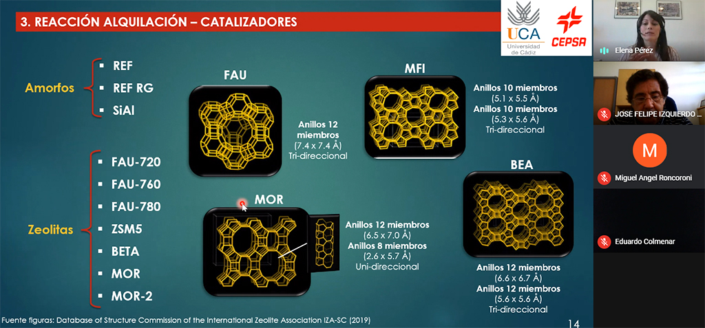 La Universidad de Cádiz y la empresa CEPSA han celebrado la defensa de su primera tesis industrial de forma telemática. Un trabajo realizado por la alumna Elena Pérez Guevara y que ha contado con la dirección de la doctora María José Franco, por parte de CEPSA, y de los catedráticos Enrique Martínez de la Ossa, del departamento de Ingeniería Química y Tecnología de Alimentos, y José María González Molinillo, del departamento de Química Orgánica de la UCA.