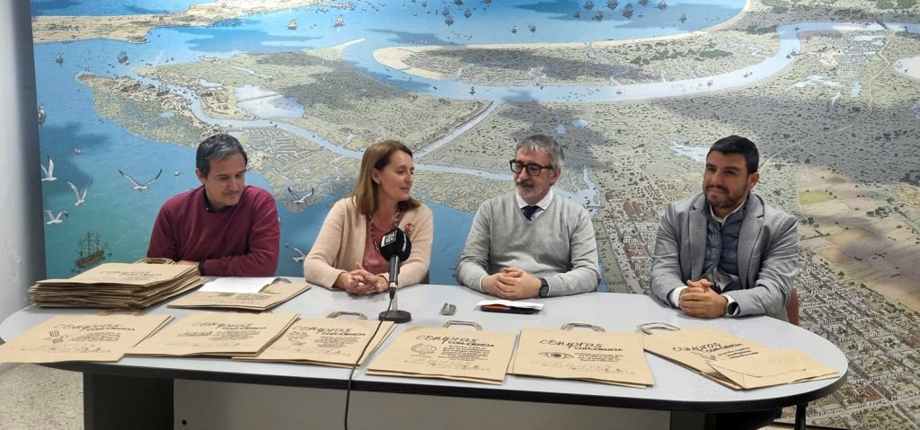 El rector en funciones de la Universidad de Cádiz, Francisco Piniella, y la alcaldesa de Puerto Real, Aurora Salvador, acompañados por el delegado de Ciudad Sostenible de Puerto Real, José Antonio Montilla, y el director General en funciones de Gestión y Apoyo I+D+I de la UCA, David Jiménez Pavón, han presentado esta mañana la actividad ‘Compras Con-Ciencia’, una iniciativa puesta en marcha gracias a la colaboración de la Fundación Española para la Ciencia y la Tecnología (FECYT) – Ministerio de Ciencia e Innovación y la Asociación de Comerciantes y Empresarios (ACE) de esta localidad.