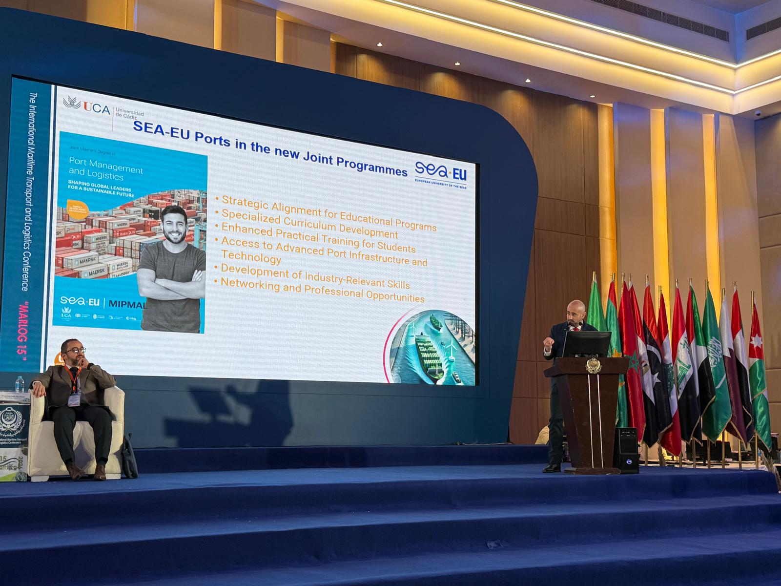 La participación en MARLOG 15 ha permitido, además, abrir nuevas oportunidades de colaboración con la Arab Academy. En este sentido, se están explorando posibles líneas de cooperación académica y formativa con esta institución, especialmente a través del profesor Alaa Mahmoud Morsy, Dean del Port Training Institute & Maritime Research & Consultation Center, con el objetivo de ampliar la proyección internacional de SEA-EU en el ámbito mediterráneo.