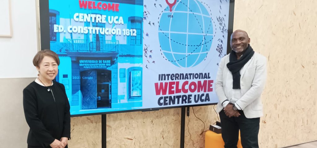 Midori Hatanaka y Rafael Jiménez Castañeda estuvieron acompañados por los directores en funciones de la Oficina de Internacionalización, Michel Remi, y de la Oficina de Cooperación Internacional, Germán Jiménez. Posteriormente, realizó un recorrido por el Campus de Cádiz para conocer sus diferentes edificios e instalaciones, entre ellas el Colegio Mayor y el ‘Welcome Centre UCA’. Asimismo, visitó las facultades de Ciencias Económicas y Empresariales y de Filosofía y Letras, en las que mantuvo encuentros con los respectivos decanos; Pedro Araujo y Arturo Morgado.