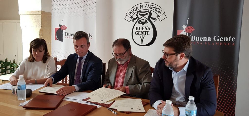 El rector de la Universidad de Cádiz, Eduardo González Mazo, y el presidente de la Confederación de Peñas Flamencas de Andalucía, Francisco Viedma, han firmado en la peña flamenca La Buena Gente de Jerez, un protocolo general de actuación y un convenio específico en relación con la puesta en marcha en 2018/19 del máster interuniversitario en Investigación y Análisis del Flamenco. Se trata del único título oficial universitario centrado en el estudio del flamenco.