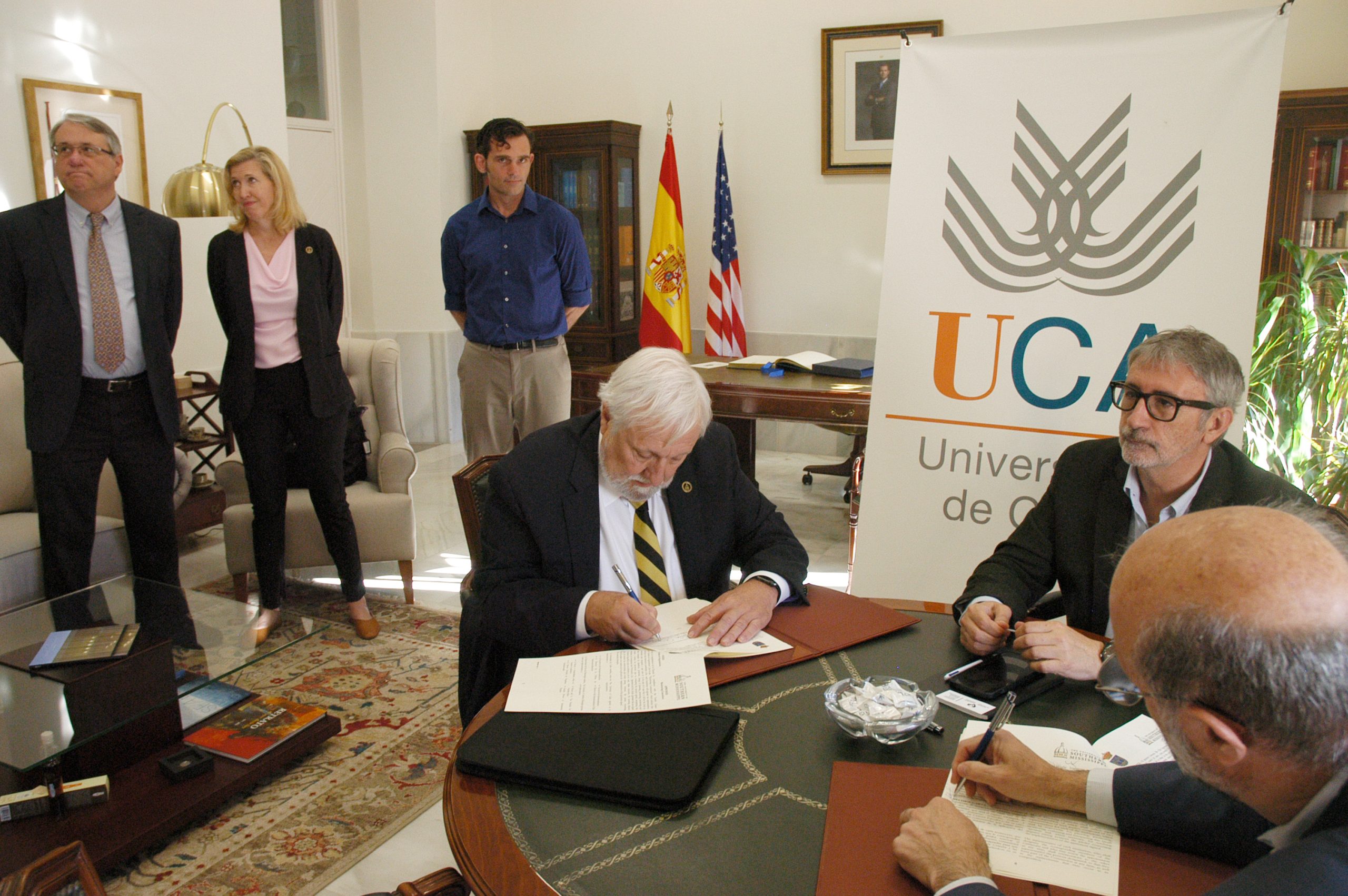 Los rectores de las universidades de Cádiz y Southern de Mississippi (USM), Francisco Piniella y Gordon Cannon, respectivamente, han firmado, en compañía del vicerrector de Internacionalización de la UCA, Rafael Jiménez Castañeda, la renovación de sus relaciones en materia docente e investigadora con un protocolo General de Colaboración y formalizado con un convenio específico el intercambio estudiantil entre sendas instituciones académicas en sus títulos de Grado y Máster.