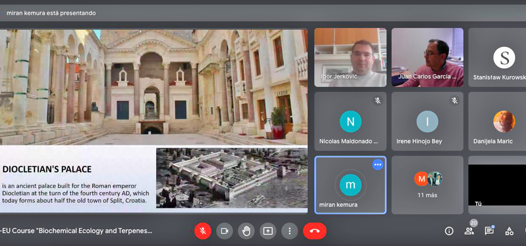 El primer curso, dirigido a alumnado de último año de grado, máster y doctorado y titulado Biochemical Ecology and Terpenes from Essential Oils, va este año por su segunda edición y ha contado con 16 inscritos de las universidades de Cádiz, Gdansk y Split. Además de asistir a las clases online, los estudiantes han tenido que realizar un trabajo de investigación bibliográfica sobre temas relacionados con el curso y presentarlo al final las clases. Los equipos se han formado con carácter internacional, con alumnos de las tres universidades que han utilizado redes sociales y herramientas virtuales para la realización coordinada de los trabajos.