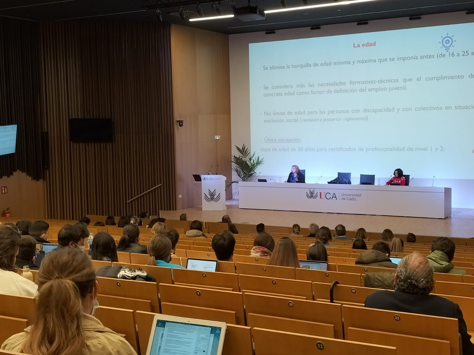 La vicerrectora de Política Educativa de la UCA y catedrática de Derecho del Trabajo y de la Seguridad Social, Eva Garrido, ha tratado de los nuevos contratos formativos.
