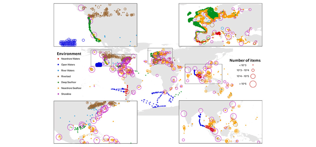 Los objetos relacionados con el hogar y la actividad industrial tienen especial relevancia en los fondos y riberas de los ríos, mientras que los residuos relacionados con el consumo de tabaco (paquetes de cigarrillos, fundas plásticas y encendedores) son especialmente abundantes en playas. Aunque el estudio utilizó únicamente datos anteriores a la pandemia de COVID, artículos de origen médico e higiénico suelen aparecer en los fondos marinos cercanos a la costa, siendo relacionados con las descargas a través de los inodoros.