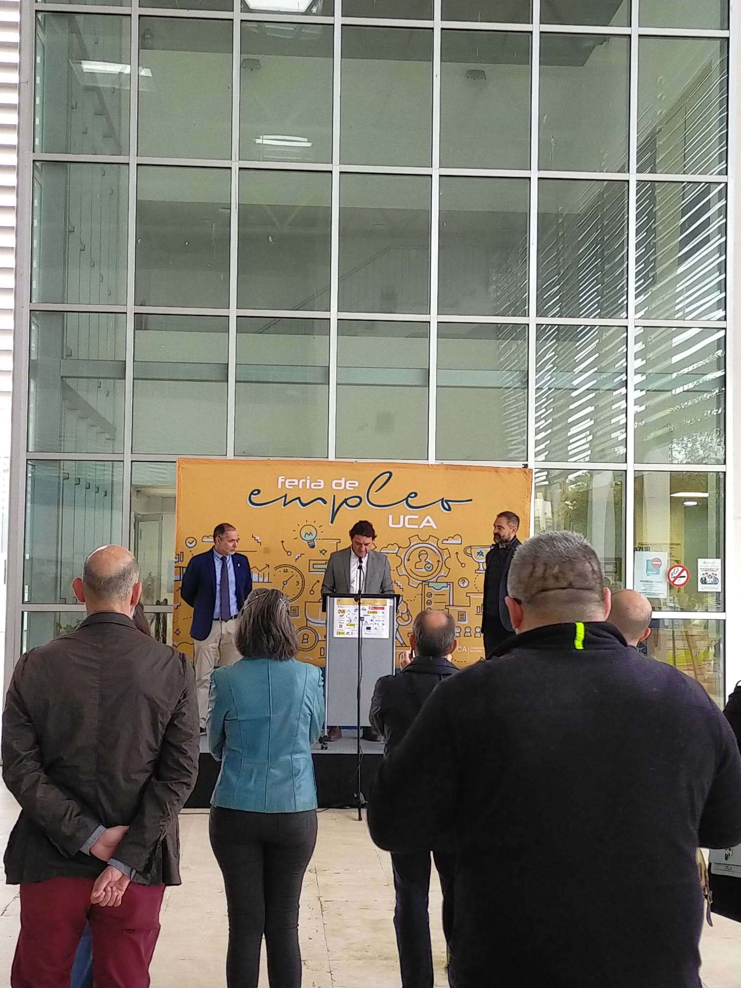 La Feria de Empleo de la Universidad de Cádiz se celebra hoy por primera vez en el Campus de Jerez con la asistencia de más de 1.000 estudiantes y egresados. Cerca de 40 empresas, entidades e instituciones de la provincia de Cádiz participan en esta iniciativa del Vicerrectorado de Estudiantes y Empleo, desde el Centro de Promoción de Empleo y Prácticas, dirigida a su alumnado y titulados para facilitarles su inserción laboral. El rector de la UCA, Francisco Piniella, ha visitado los stands instalados en el Campus junto al director General del Centro de Promoción de Empleo y Prácticas, Luis López, el delegado del Rector para el Campus de Jerez, Antonio Rafael Peña, profesorado, decanos y consejo de estudiantes. Asimismo, el delegado territorial de Empleo, Empresa y Trabajo Autónomo de la Junta de Andalucía en Cádiz, Daniel Sánchez, les acompañó en el acto de apertura.