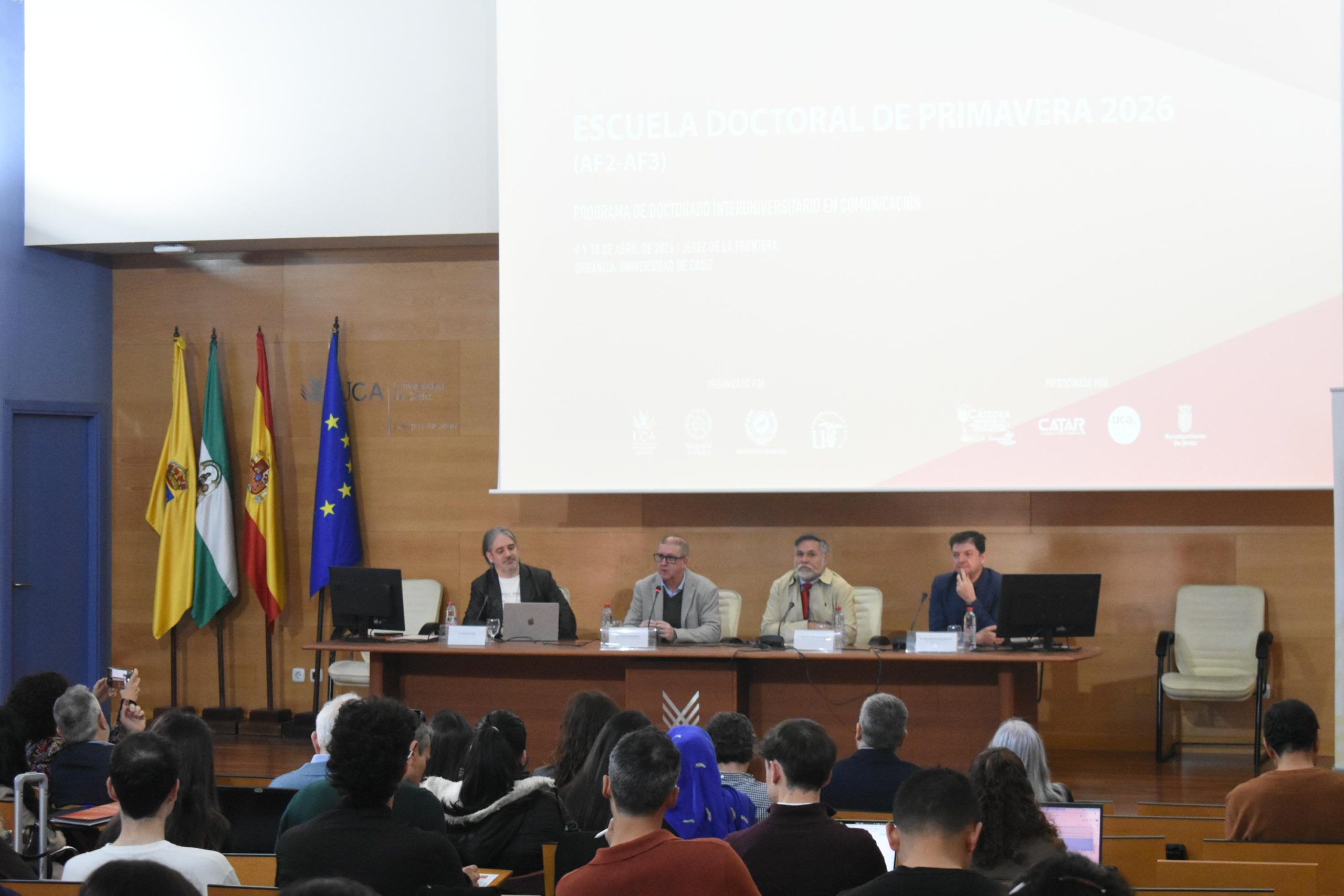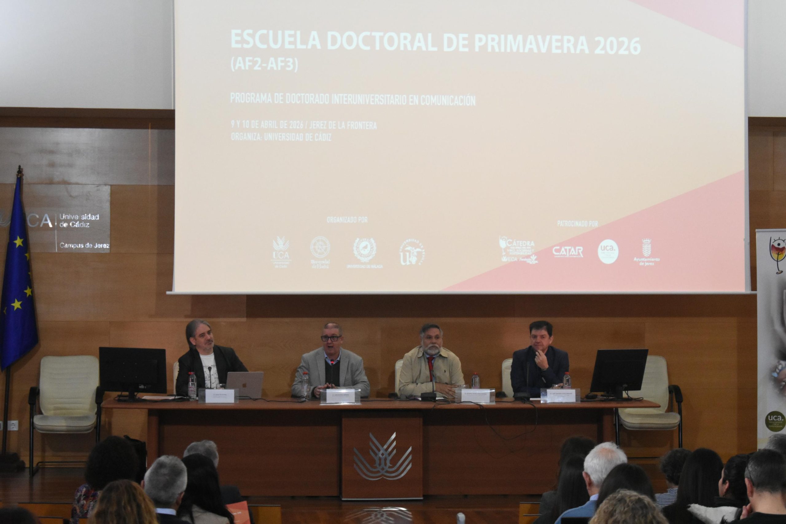 La Universidad de Cádiz ha celebrado este jueves la primera jornada de la Escuela Doctoral de Primavera 2026, una actividad formativa organizada por el Programa de Doctorado Interuniversitario en Comunicación en la que se han inscrito más de 130 doctorandos de este campo de conocimiento. Este encuentro, que tendrá lugar hasta este viernes en el Campus de Jerez, abordará temas como la incidencia del afecto, la cultura o las normas sociales en el uso cotidiano de los medios digitales o la desinformación y la comunicación política en la era de la Inteligencia Artificial.