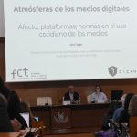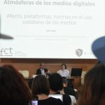 A continuación, la doctora Ana Jorge, investigadora sénior del Centre for Research in Applied Communication, Culture, and New Technologies (CICANT) y profesora asociada en la Universidade Lusófona (Lisboa, Portugal), ha pronunciado la conferencia inaugural titulada Atmósferas de los medios digitales: afecto, plataformas y normas en el uso cotidiano de los medios. El catedrático de Educación y Comunicación de la Universidad de Huelva, Ignacio Aguaded, ha sido el encargado de presentar esta ponencia.