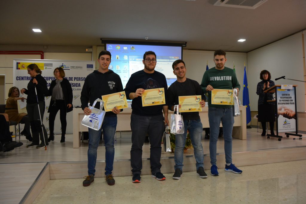 Los ganadores de esta iniciativa han sido en primer lugar los alumnos Marta Chamorro Piñero, José Peña Ruiz, Francisco Jesús Romero Fornell y Antonio Ruiz García por su trabajo Acoso escolar en la población con discapacidad, donde han contribuido a poner de manifiesto las situaciones de desigualdad a las que se enfrentan los estudiantes con discapacidad en su día a día en el ámbito escolar. El segundo premio se lo han llevado Manuel Gasca Linares, Raúl Genil Rodríguez, Antonio Llamas Montesinos y Pablo Lombardo Alonso por Consecuencias sobre la realidad virtual en la concienciación en la conducción, por dar a conocer las negativas consecuencias de conducir bajo los efectos del alcohol. El tercer galardón se ha concedido a La discriminación hacia las personas con discapacidad en los medios de transporte, en el que Lucía Luna Redondo y Pablo González Fernández han mostrado las barreras en taxis, autobuses y trenes a las que se enfrentan las personas con discapacidad. Por último, hubo un accésit para el trabajo sobre la Discriminación en las personas con discapacidad auditiva, realizado por Nicolás Sánchez Romero, Julia Serrano Soriano y Araceli Trujillo Pacheco.