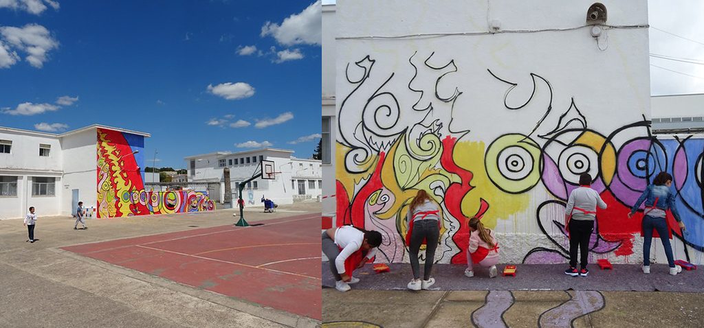 En el CEIP Federico Mayo de la localidad de Jerez, 50 estudiantes de Primaria han elaborado un mural, cuya temática central ha girado en torno al sistema solar. El proceso de creación de este gran dibujo se divide en varias fases, siendo la primera de ellas una sesión grupal en la que se les explica la actividad y la temática científica seleccionada, para pasar a la elaboración de los bocetos por parte del alumnado. Tras ello, se realiza la preparación de los muros o espacios donde se va a plasmar – consensuado entre monitores y estudiantes – y se procede a la realización del mismo. El mural lo pintan los propios niños, siempre guiados por los monitores.