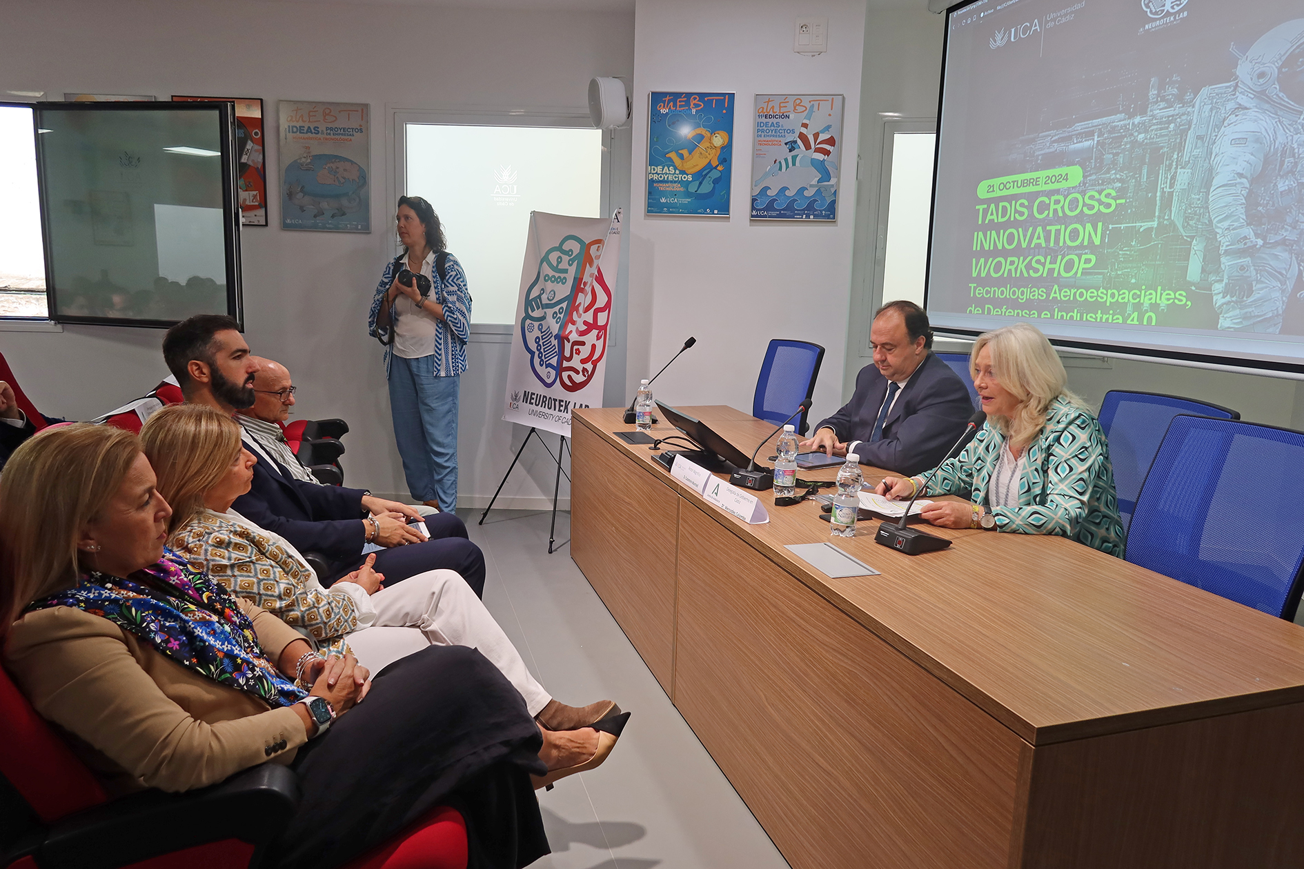 La Universidad de Cádiz celebra hoy el evento TADIS Cross-Innovation Workshop (Tecnologías Aeroespaciales, de Defensa e Industria 4.0 para la Salud), organizado por el grupo de investigación ‘Neurotek Lab’ y el Instituto de Investigación e Innovación Biomédica de Cádiz (INiBICA), bajo la coordinación de los investigadores Gabriel G. De la Torre y Julio Ríos de la Rosa. El rector de la Universidad de Cádiz, Casimiro Mantell, en compañía de la delegada del Gobierno Andaluz en Cádiz, Mercedes Colombo, les ha dado la bienvenida en el CTE El Olivillo.