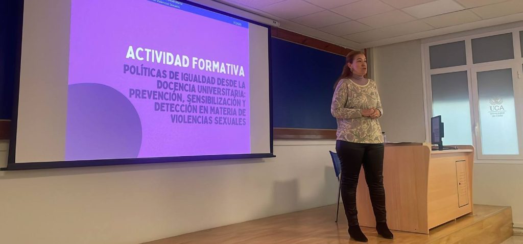 Antes de la conferencia, ha tenido lugar la actividad formativa Políticas de Igualdad de Mujeres y Hombres desde la docencia universitaria: Prevención, sensibilización y detección en materia de violencias sexuales, a cargo de Remedios Menéndez. Esta sesión se ha desarrollado en la Facultad de Medicina y es una iniciativa promovida por la Unidad de Formación e Innovación Docente de la UCA, en colaboración con la Unidad de Igualdad. Esta formación, dirigida al personal docente e investigador, ha sido concebida como una herramienta clave para fortalecer la respuesta institucional ante las violencias sexuales desde el ámbito universitario.