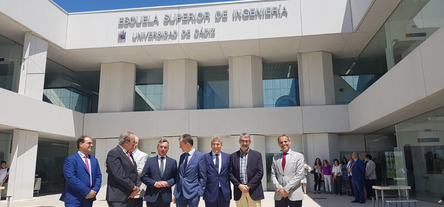 El ministro en funciones de Ciencia, Innovación y Universidades, Pedro Duque, ha realizado su primera visita institucional a la Universidad de Cádiz, en concreto al Campus de Puerto Real, junto al rector en funciones de la UCA, Eduardo González Mazo, y el delegado en funciones del Gobierno de España en Andalucía, Lucrecio Fernández, en compañía del rector electo de la UCA, Francisco Piniella, el presidente del Consejo Social de la UCa, Prudencio Escamilla, el director de la Escuela Superior de Ingeniería, Juan José Domínguez, el coordinador General del Campus de Excelencia Internacional Global del Mar, Juan José Vergara, el vicerrector en funciones de Transferencia e Innovación Tecnológica, Javier Pérez, el subdelegado en funciones del Gobierno en Cádiz, José Antonio Pacheco, la decana de la Facultad de Ciencias del Mar y Ambientales, Milagrosa Casimiro-Soriguer, y el director de la Escuela de Ingenierías Marina, Náutica y Radioelectrónica, Juan Moreno, y una nutrida representación de profesorado, estudiantes y trabajadores de la comunidad universitaria.