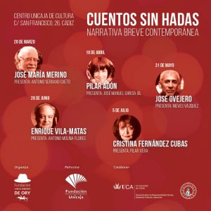En este caso, “Cuentos sin hadas. Ciclo de Narrativa Breve Contemporánea” comparte intereses y formato con el veterano programa Presencias Literarias en la Universidad de Cádiz, cuya cita número 174 estuvo protagonizada hace unos días por el escritor Sergio del Molino y que recibirá a Belén Gopegui el próximo 26 de abril. Sus objetivos también se centran en la reivindicación y difusión de la narrativa contemporánea de la mano y la palabra de sus más valiosos autores.