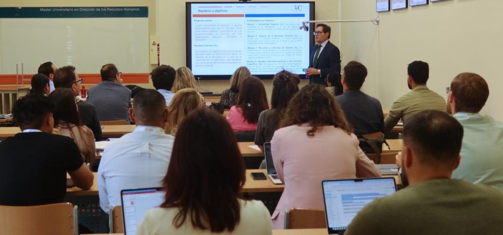 De forma simultánea, la jornada ha acogido la defensa de planes de investigación por parte de estudiantes de doctorado de programas vinculados al ámbito económico y empresarial. Estas presentaciones han permitido conocer propuestas centradas en cuestiones como la digitalización, la sostenibilidad organizativa, el liderazgo o el empoderamiento económico, evidenciando la diversidad temática y la orientación aplicada de las líneas de investigación desarrolladas en la Universidad de Cádiz.