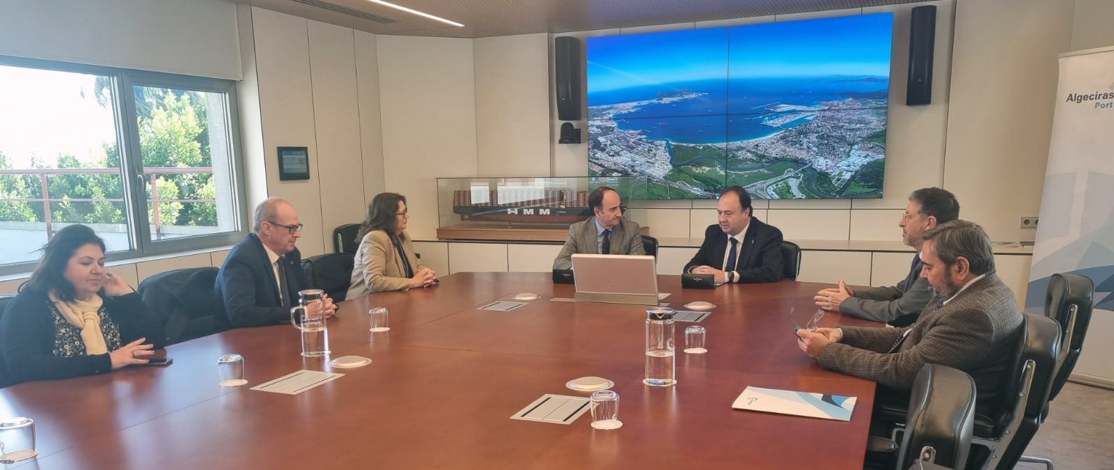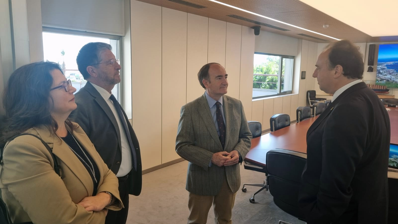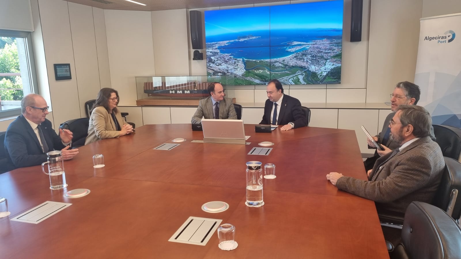 A continuación, el rector, acompañado por equipo del Vicerrectorado del Campus, se ha trasladado a la Autoridad Portuaria de la Bahía de Algeciras, donde les ha recibido su presidente, Gerardo Landaluce, junto a representantes de la APBA.