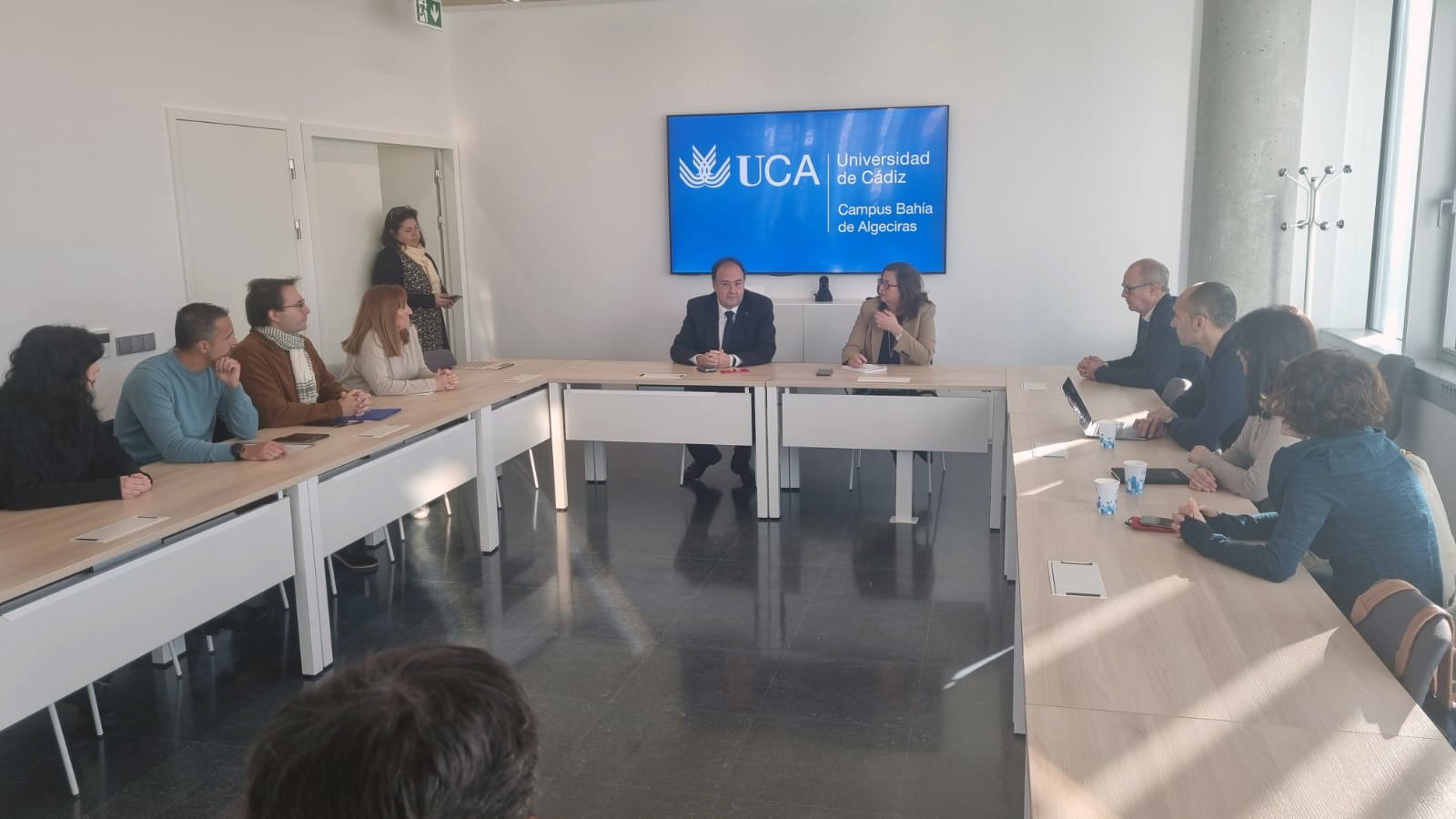 En ambos encuentros, que se han desarrollado en el Centro de Innovación UCA-SEA ubicado en el Llano Amarillo, el rector de la Universidad de Cádiz ha estado acompañado por la nueva vicerrectora del Campus Bahía de Algeciras, M.ª Luz Martín Rodríguez.