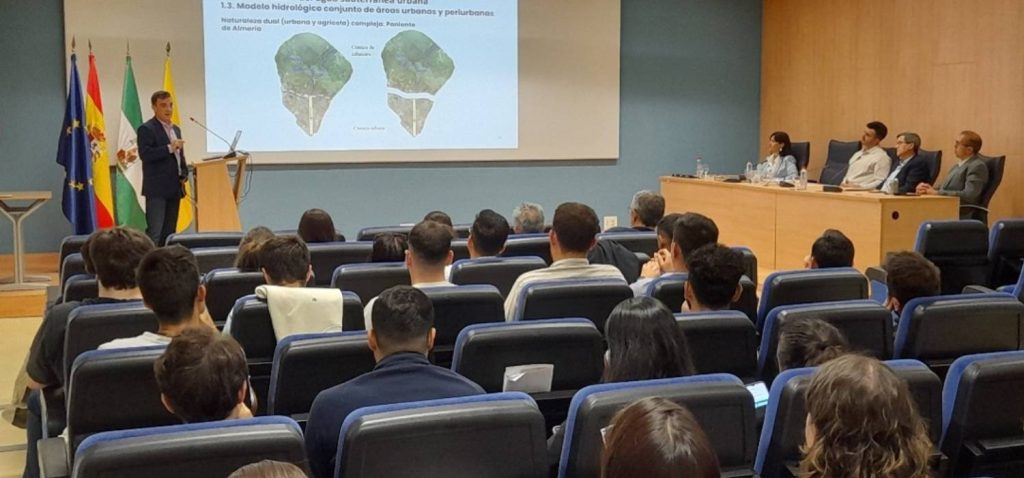 La ponencia inaugural, titulada Fundamentals, Processes and Challenges in Urban Hydrology, fue impartida por Jorge Isidoro, doctor en Ingeniería Civil y profesor de la Universidad del Algarve, socia del consorcio SEA-EU y entidad colaboradora del proyecto. Su intervención ofreció una panorámica amplia de los fundamentos de la hidrología urbana y de los desafíos que plantean los sistemas hídricos en ciudades expuestas a fenómenos extremos y crecientes presiones urbanísticas.