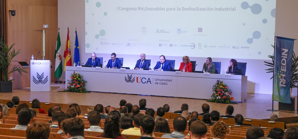 La Universidad de Cádiz, a través del Vicerrectorado del Campus Bahía de Algeciras y en colaboración con la Fundación Campus Tecnológico de Algeciras, ha inaugurado en la mañana de este miércoles el I Congreso RH₂Enovables para la Desfosilización Industrial – RH2EDiN 2025, que se celebra durante los días 29 y 30 de octubre en la Escuela Técnica Superior de Ingeniería de Algeciras (ETSIA). El encuentro tiene como objetivo reunir a los principales agentes del ecosistema científico, tecnológico e industrial para debatir sobre los últimos avances en torno al hidrógeno renovable y su papel estratégico en la transición energética.