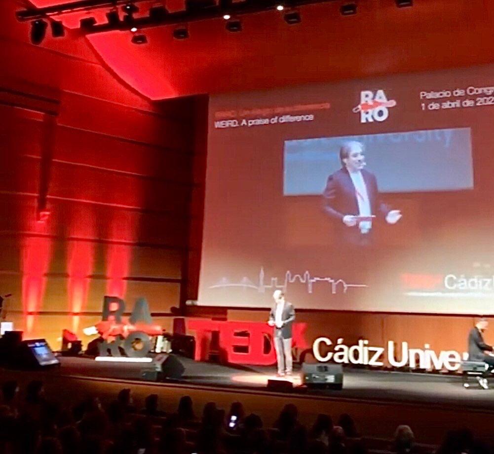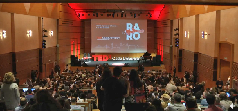 La Universidad de Cádiz ha celebrado con gran éxito de público el eventoTedxCádizUniversity 2022 en el Palacio de Congresos de Cádiz. Más de 900 personas han asistido a este encuentro de novedoso formato, a través de tecnología, entretenimiento y diseño, que este año se presentó bajo el lema Raro. Un elogio de la diferencia (WEIRD. A praise of difference). Su completo programa, retransmitido en streaming en su página oficial de Facebook, ha contado con artistas, periodistas, docentes, amantes de la literatura, ingenieros, estudiantes y compositores como José Guerrero Yuyu, Maialen Gurbindo Chica Sobresalto, Juanjo Cardenal o Leonardo A.