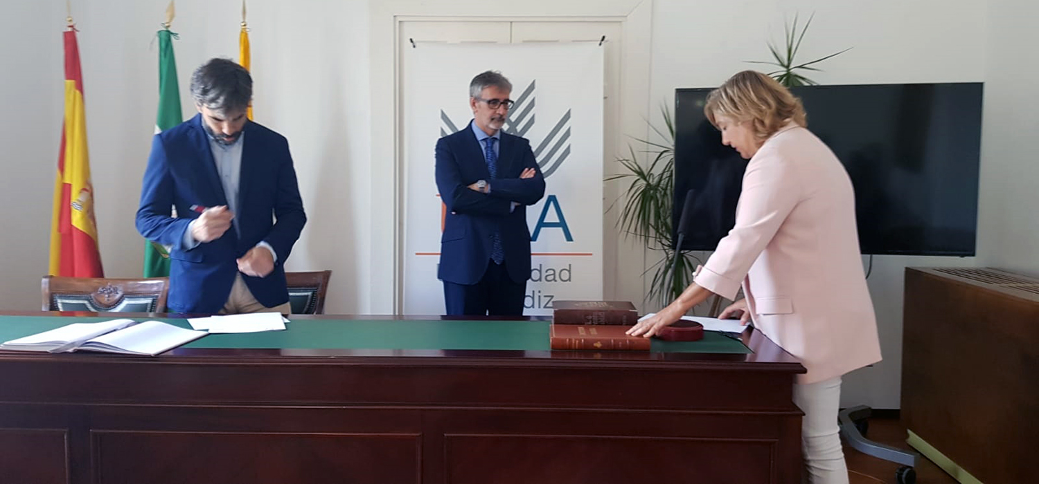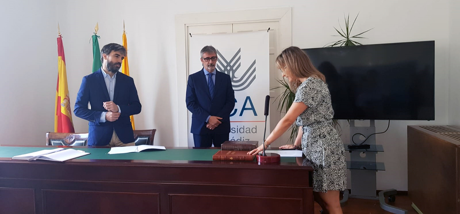 El rector de la Universidad de Cádiz, Francisco Piniella, acompañado por el secretario General de la UCA, Alfonso Sanz, ha presidido hoy la toma de posesión de cargos académicos.