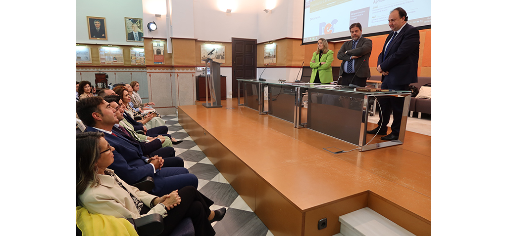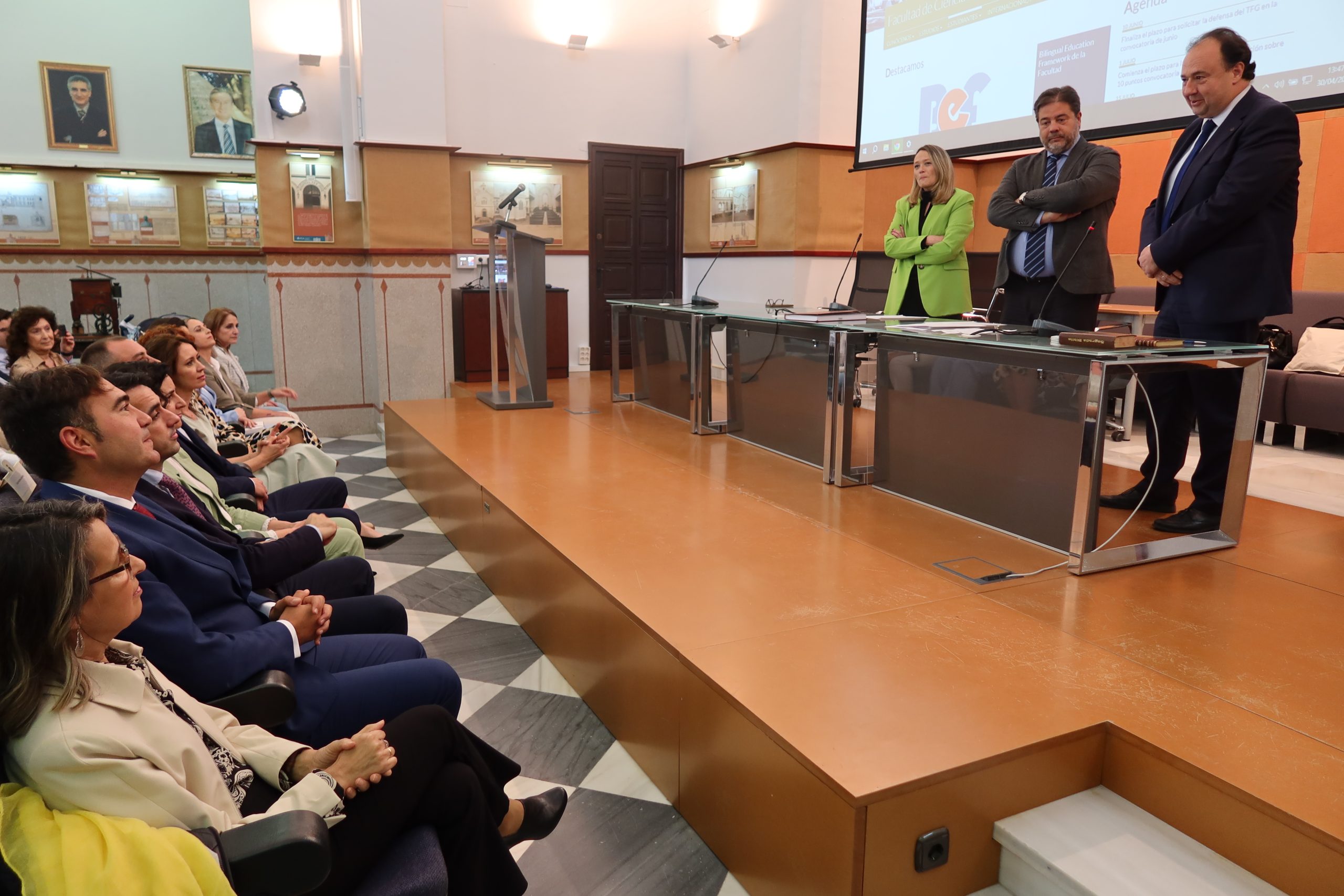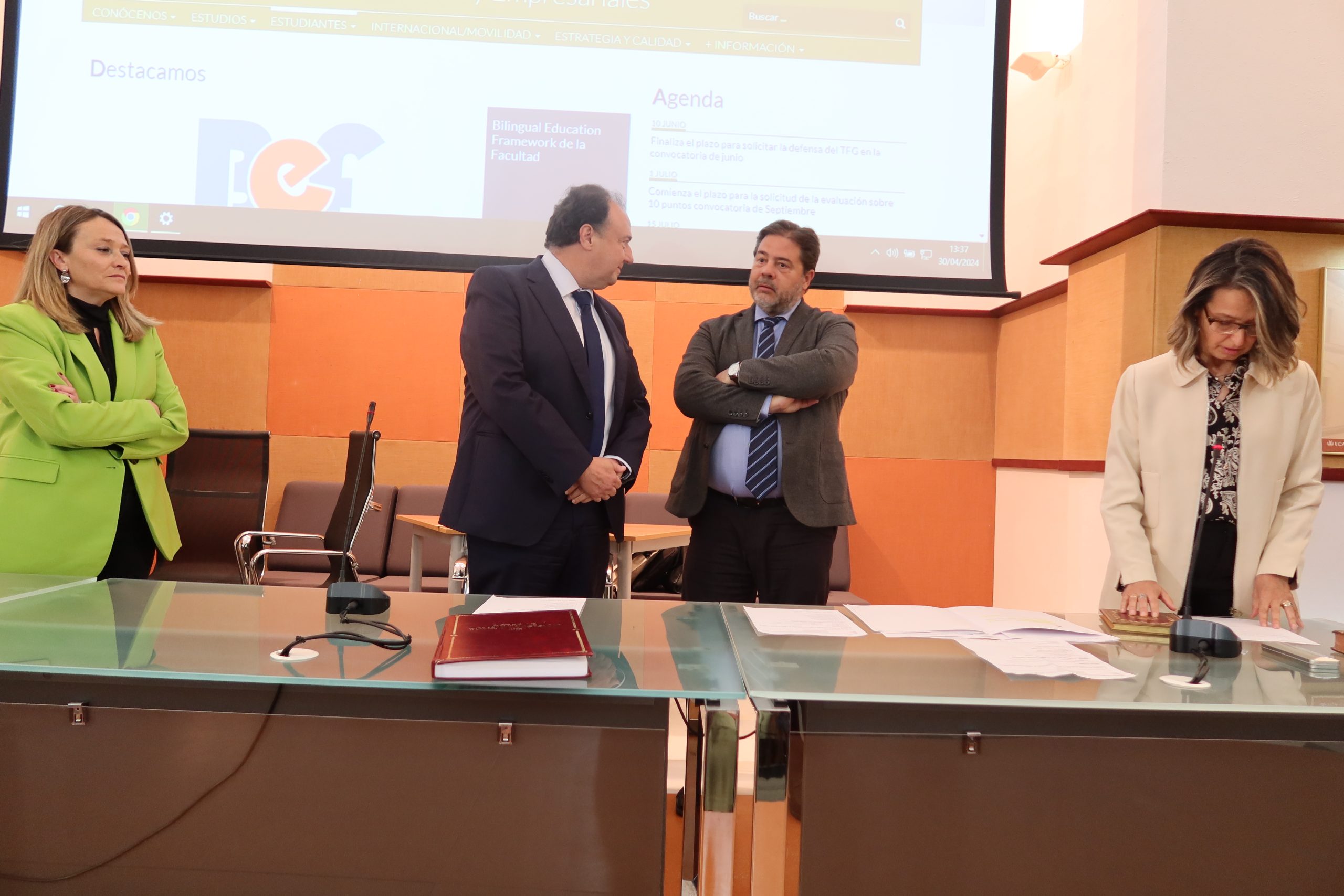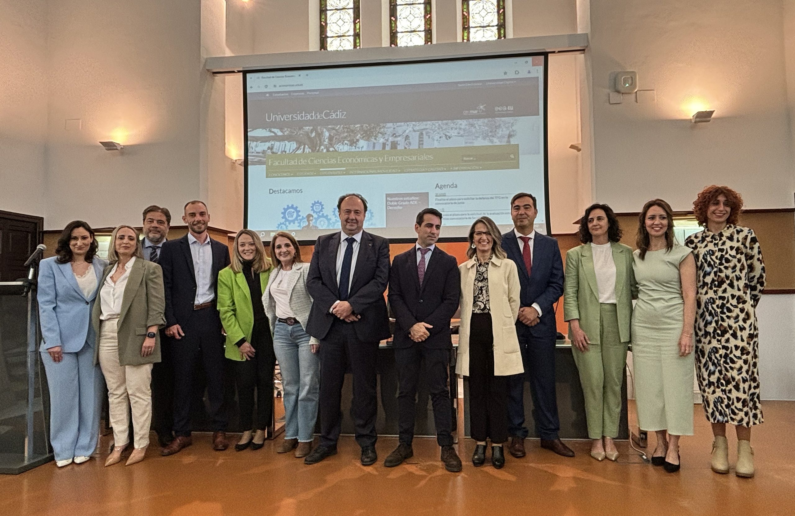 El rector de la Universidad de Cádiz, Casimiro Mantell, junto con el secretario General, Manuel Rozados, y la gerente de la UCA, Mariví Martínez, ha presidido hoy, en el salón de Grados de la Facultad de Ciencias Económicas y Empresariales, la toma de posesión de cargos académicos y personal técnico de administración y servicios.