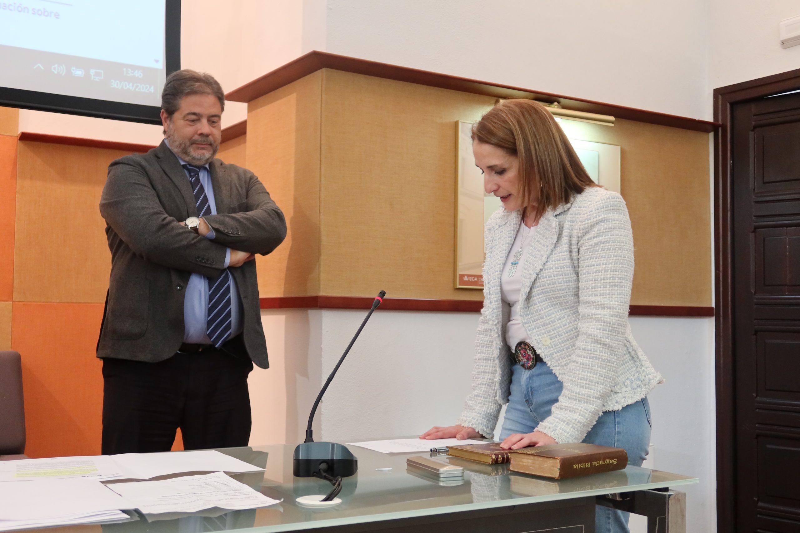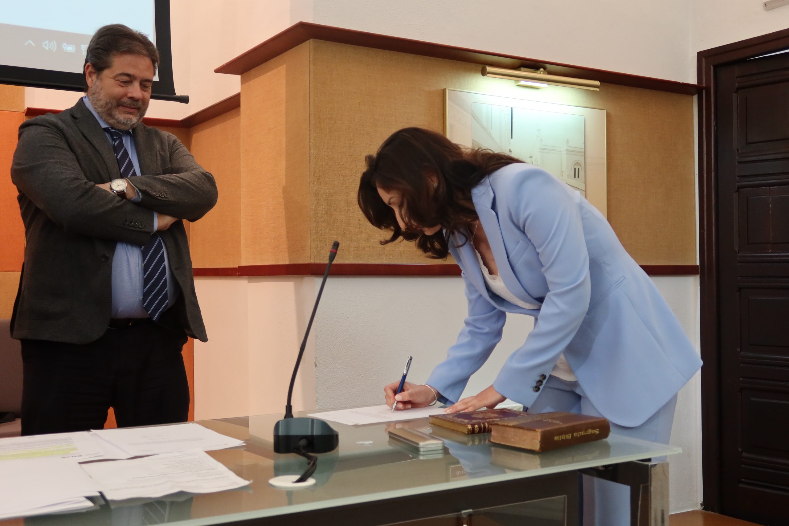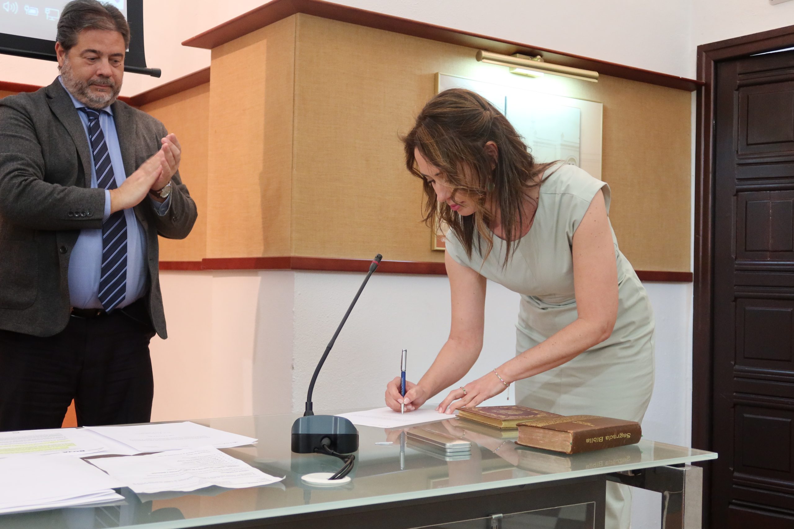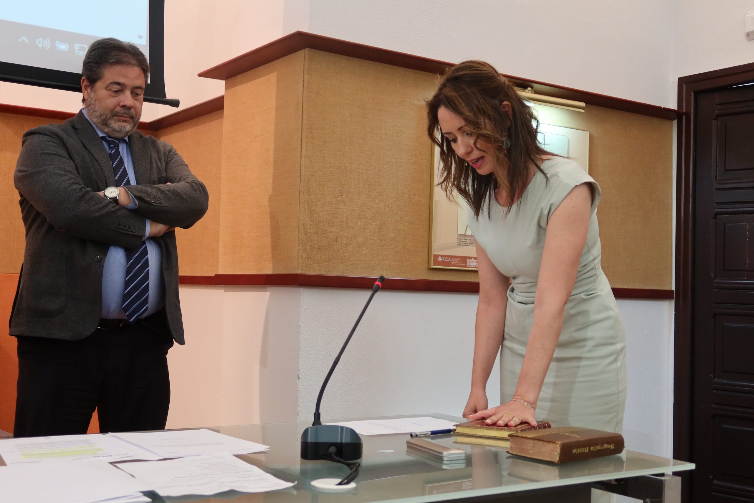 En primer lugar, han jurado/prometido sus cargos María Mercedes Soto García como directora de secretariado de Convenios y Transparencia y Jesús Barrena Martínez como director del departamento de Organización de Empresas.