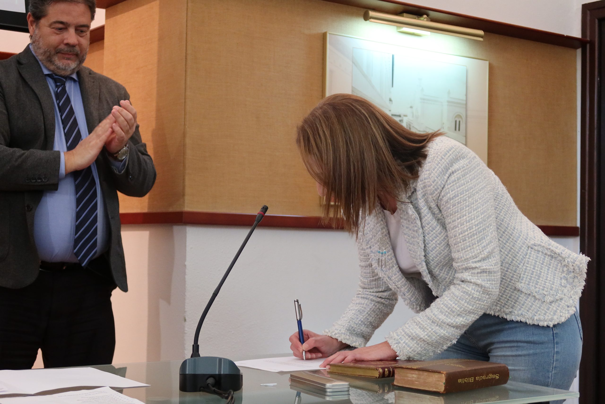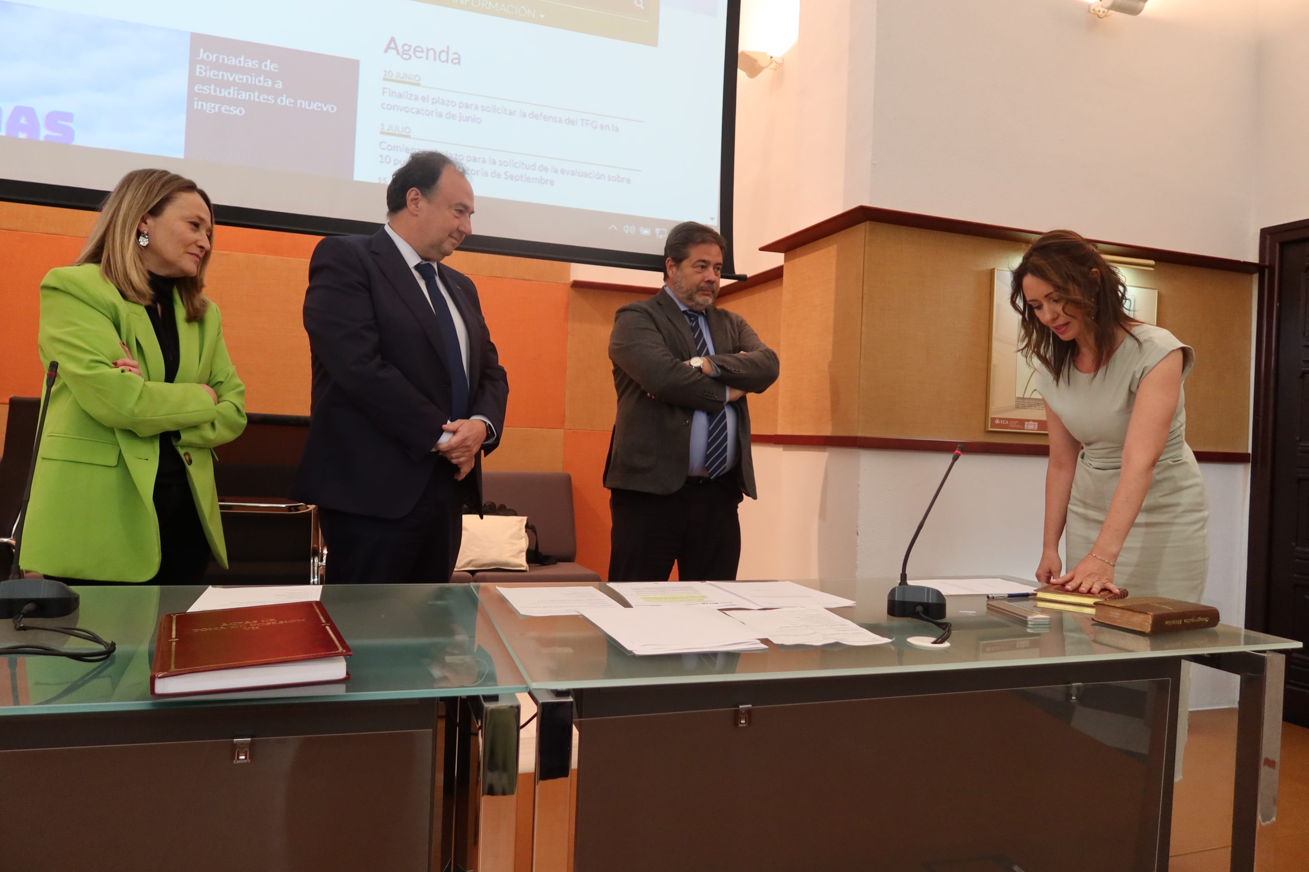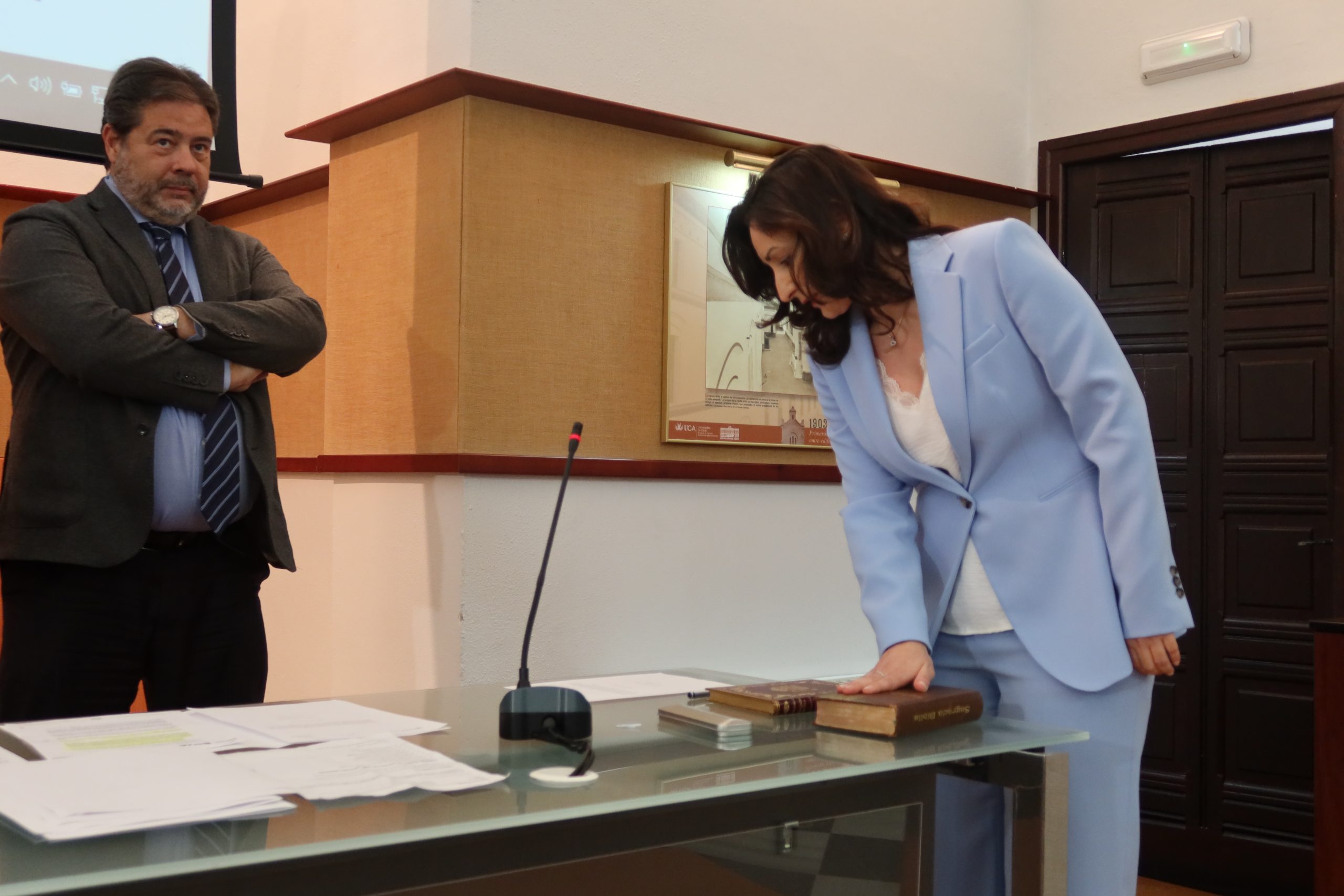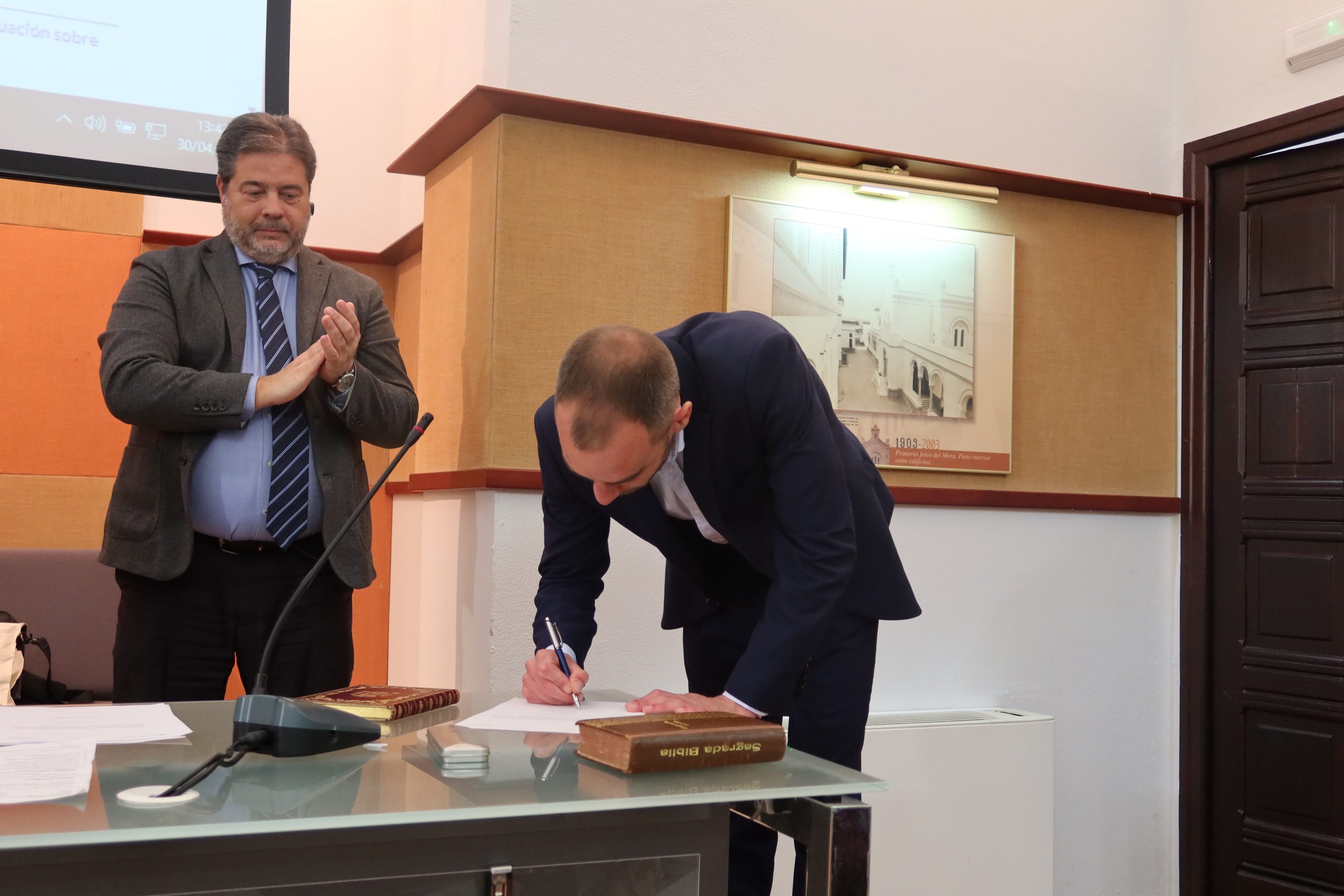 En primer lugar, han jurado/prometido sus cargos María Mercedes Soto García como directora de secretariado de Convenios y Transparencia y Jesús Barrena Martínez como director del departamento de Organización de Empresas.