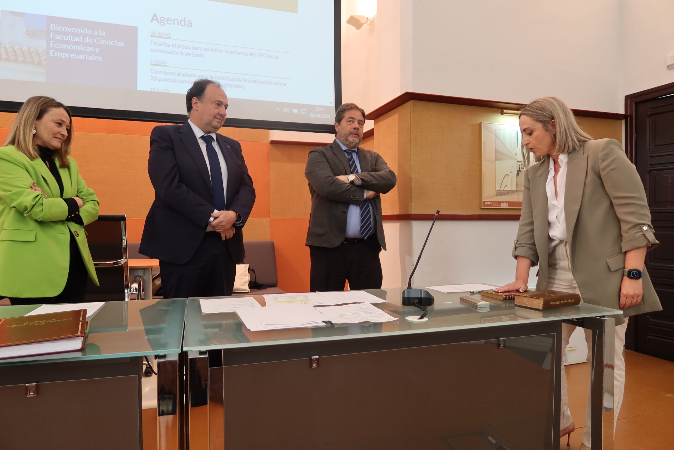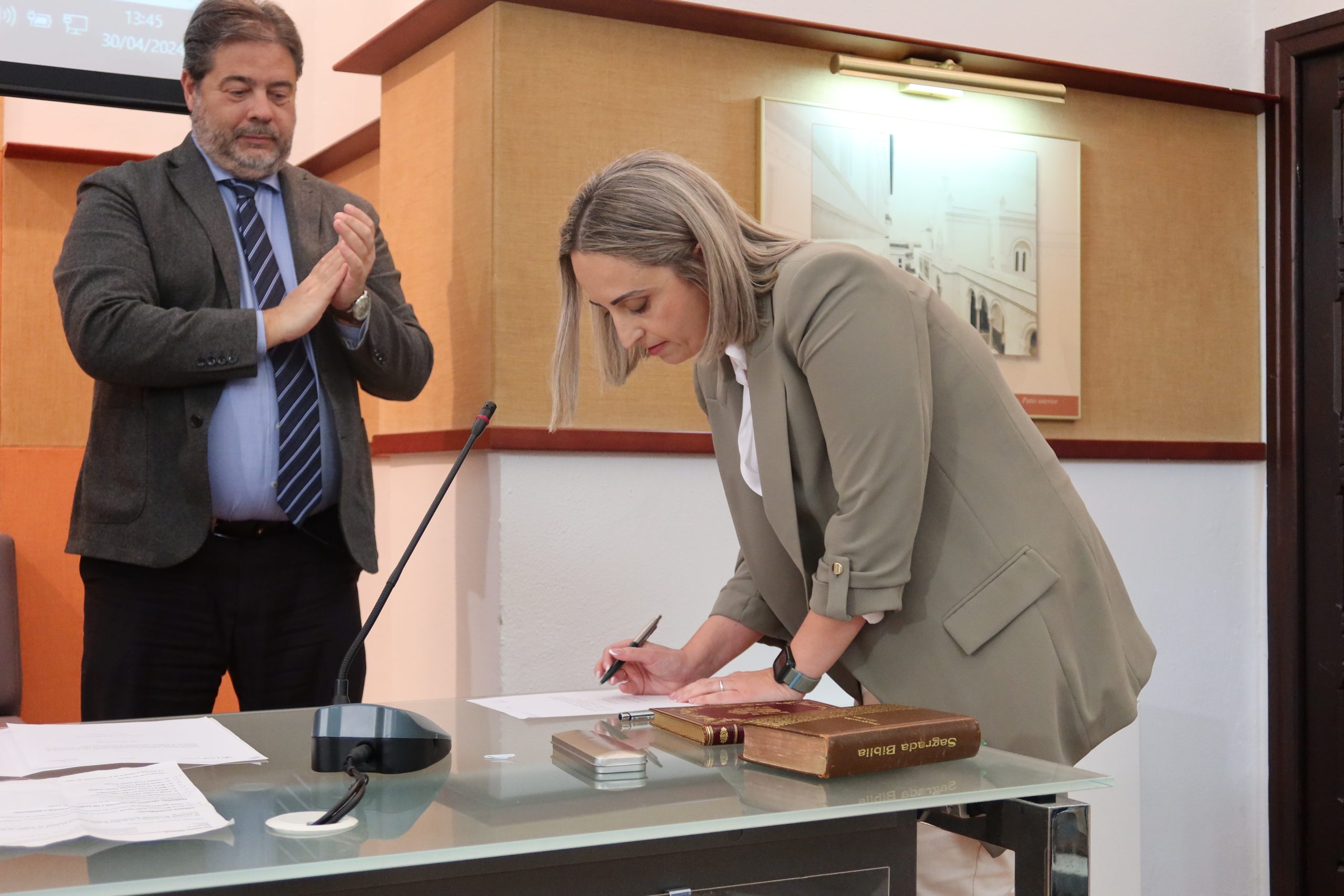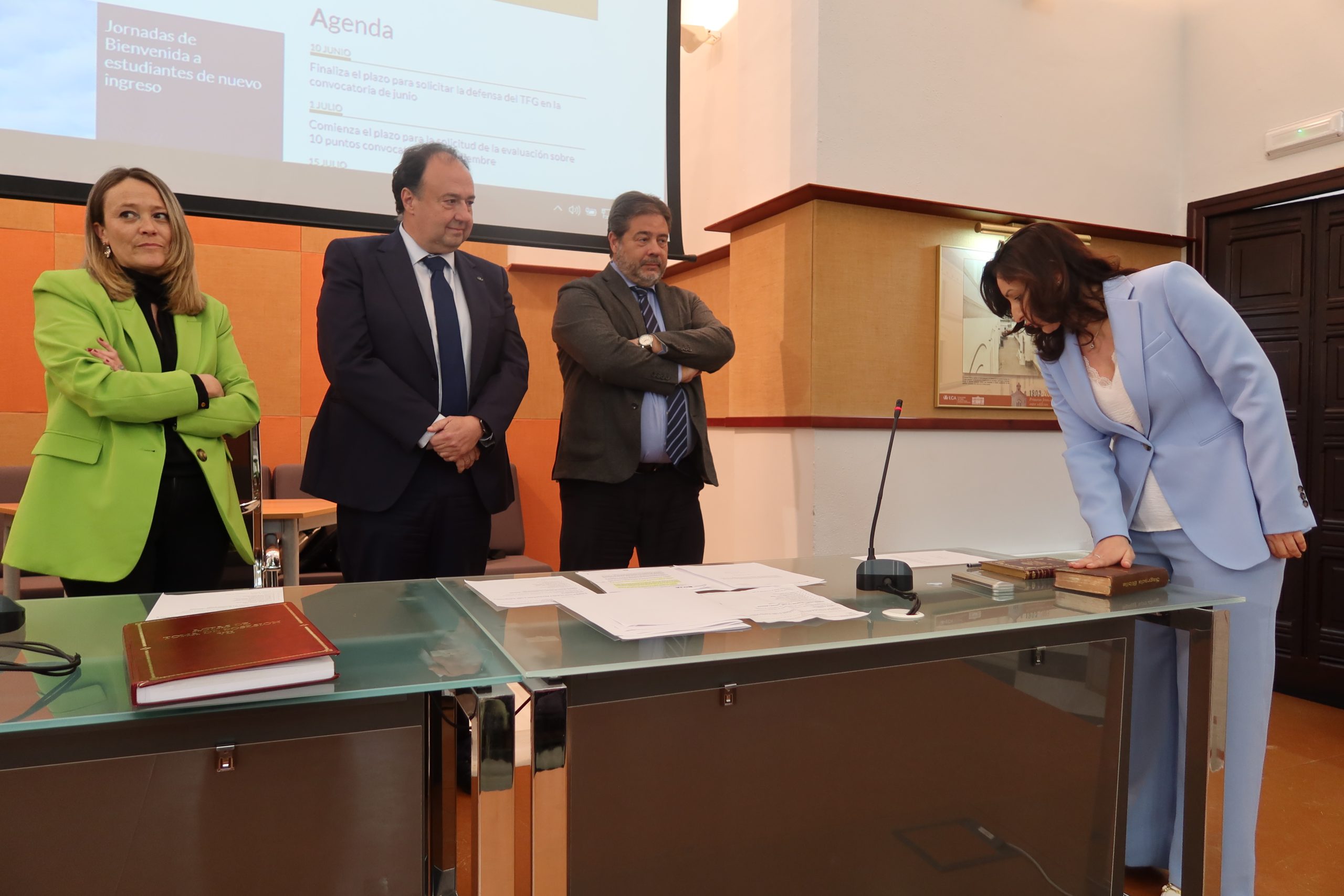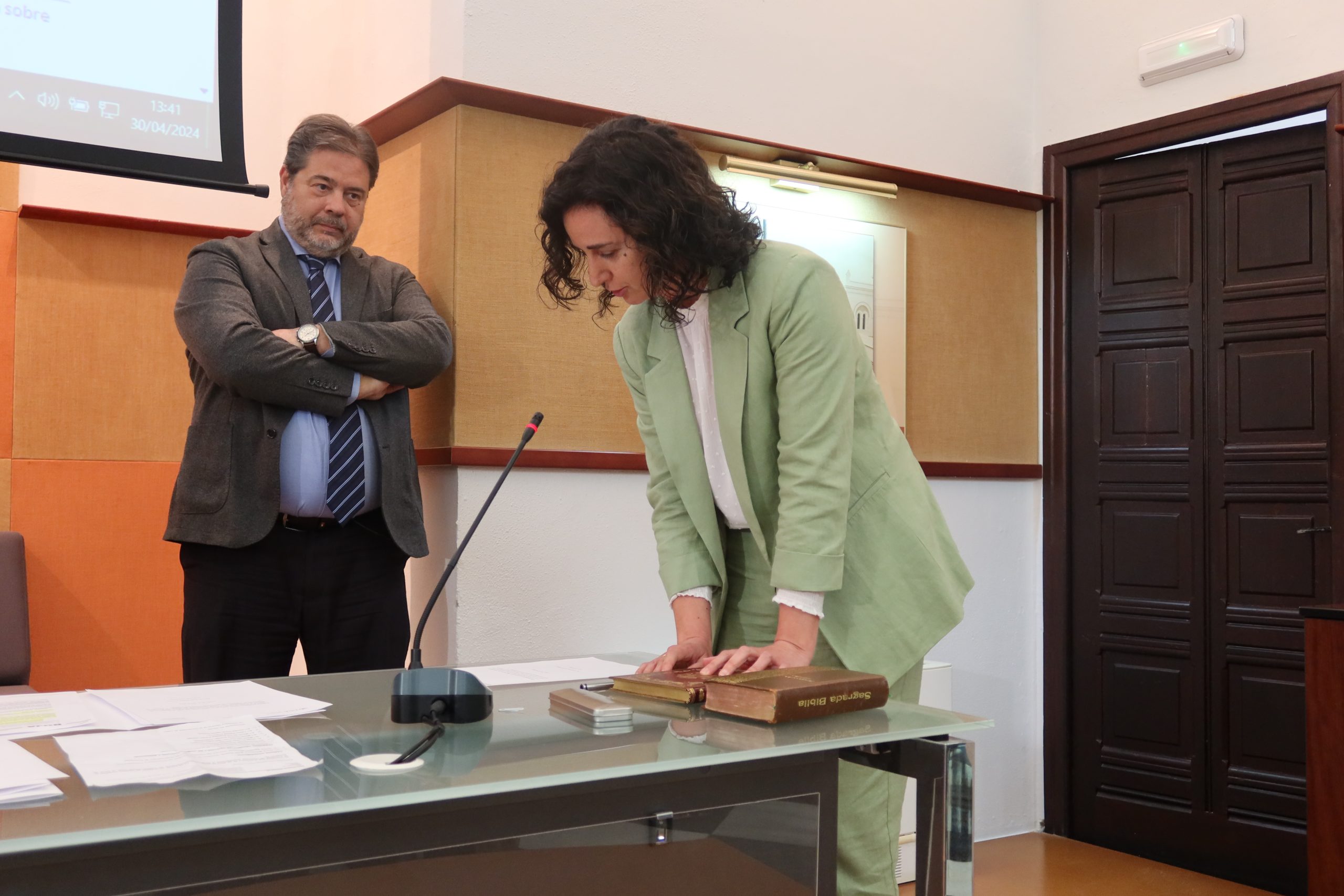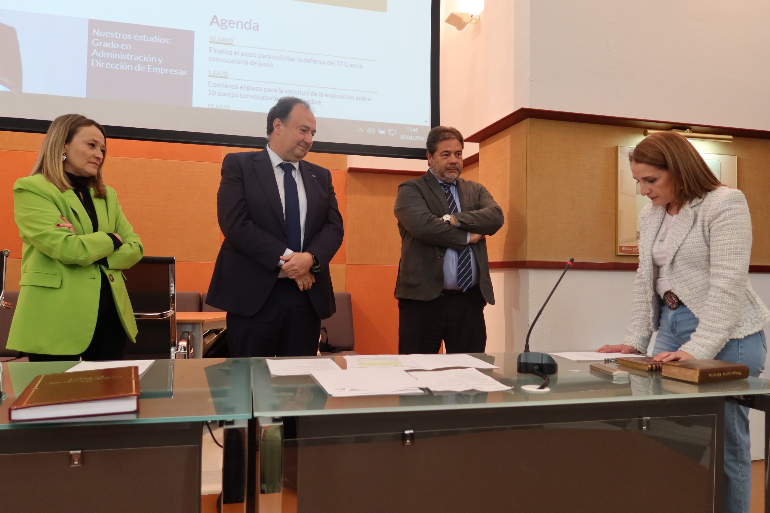 En primer lugar, han jurado/prometido sus cargos María Mercedes Soto García como directora de secretariado de Convenios y Transparencia y Jesús Barrena Martínez como director del departamento de Organización de Empresas.