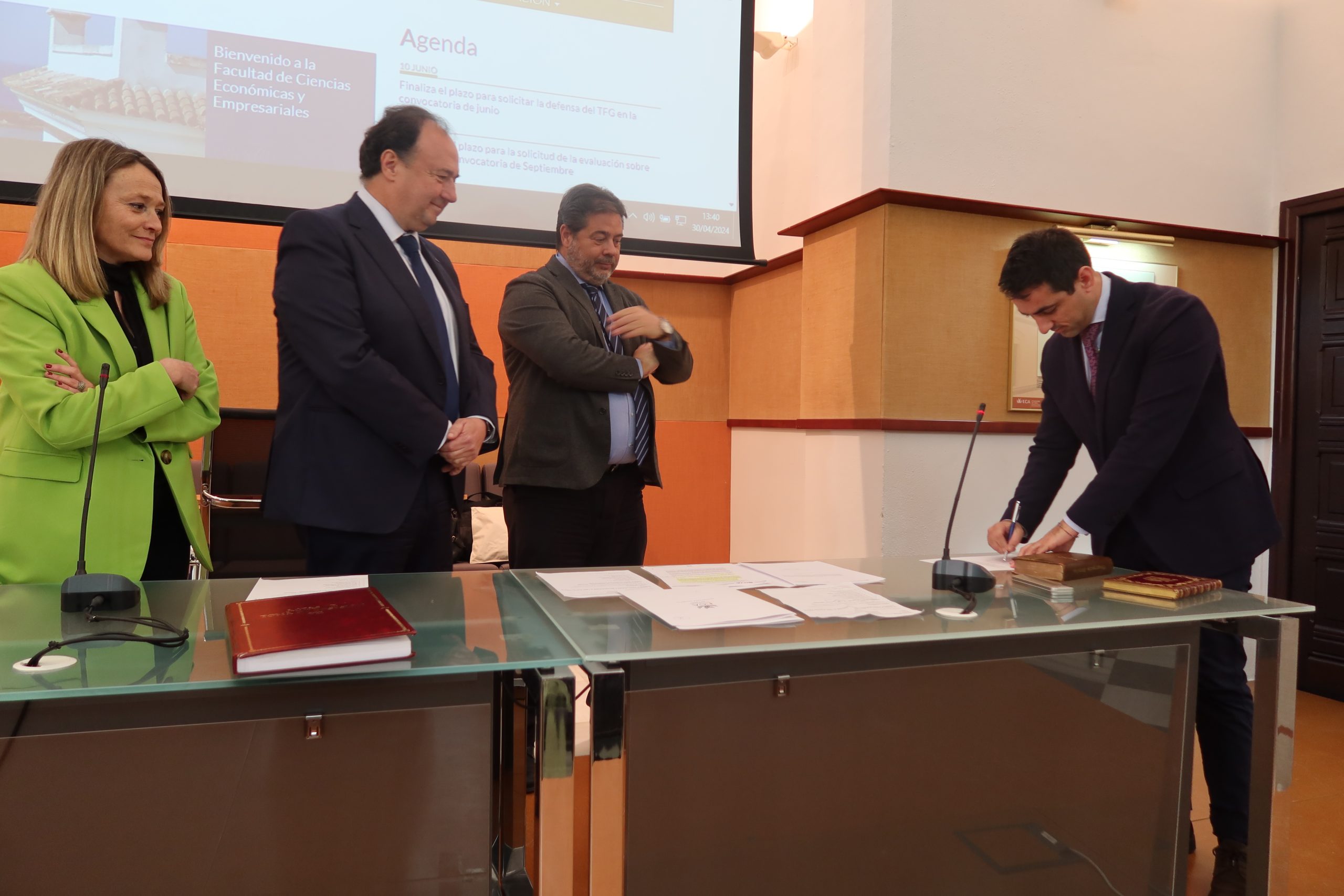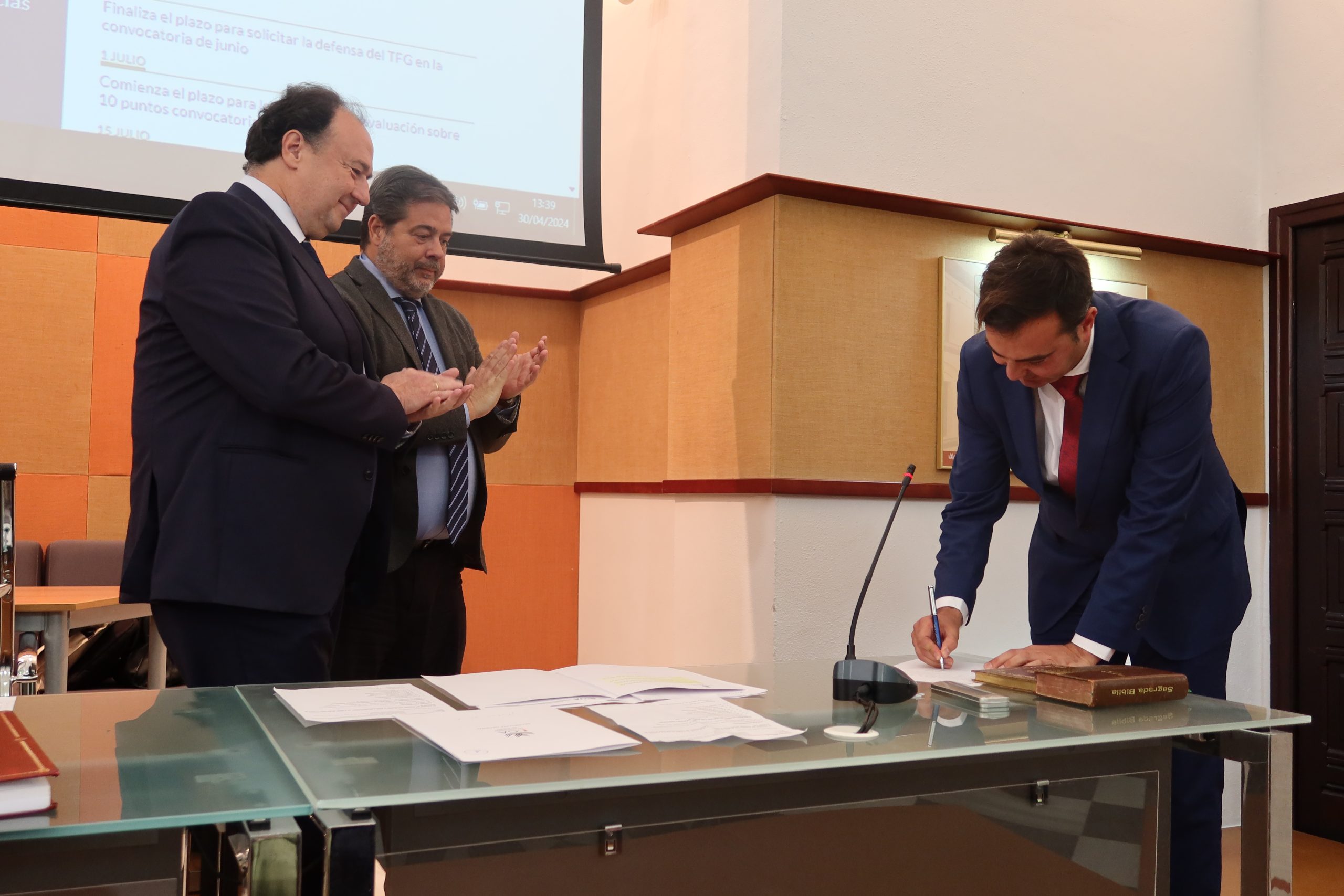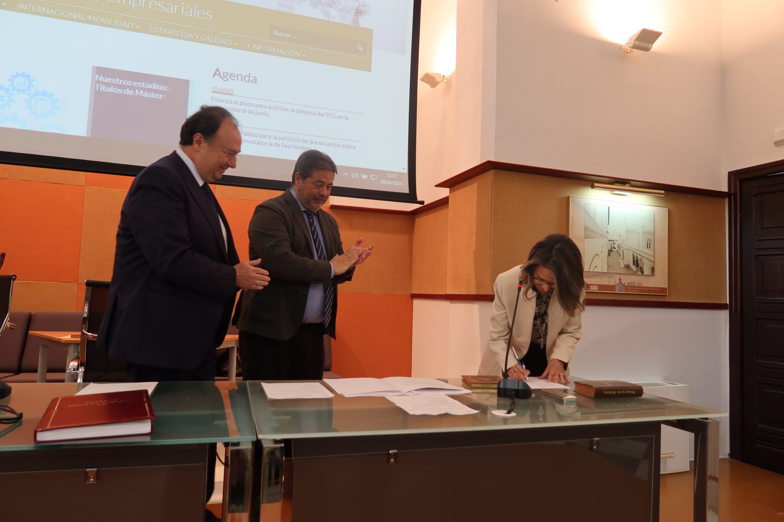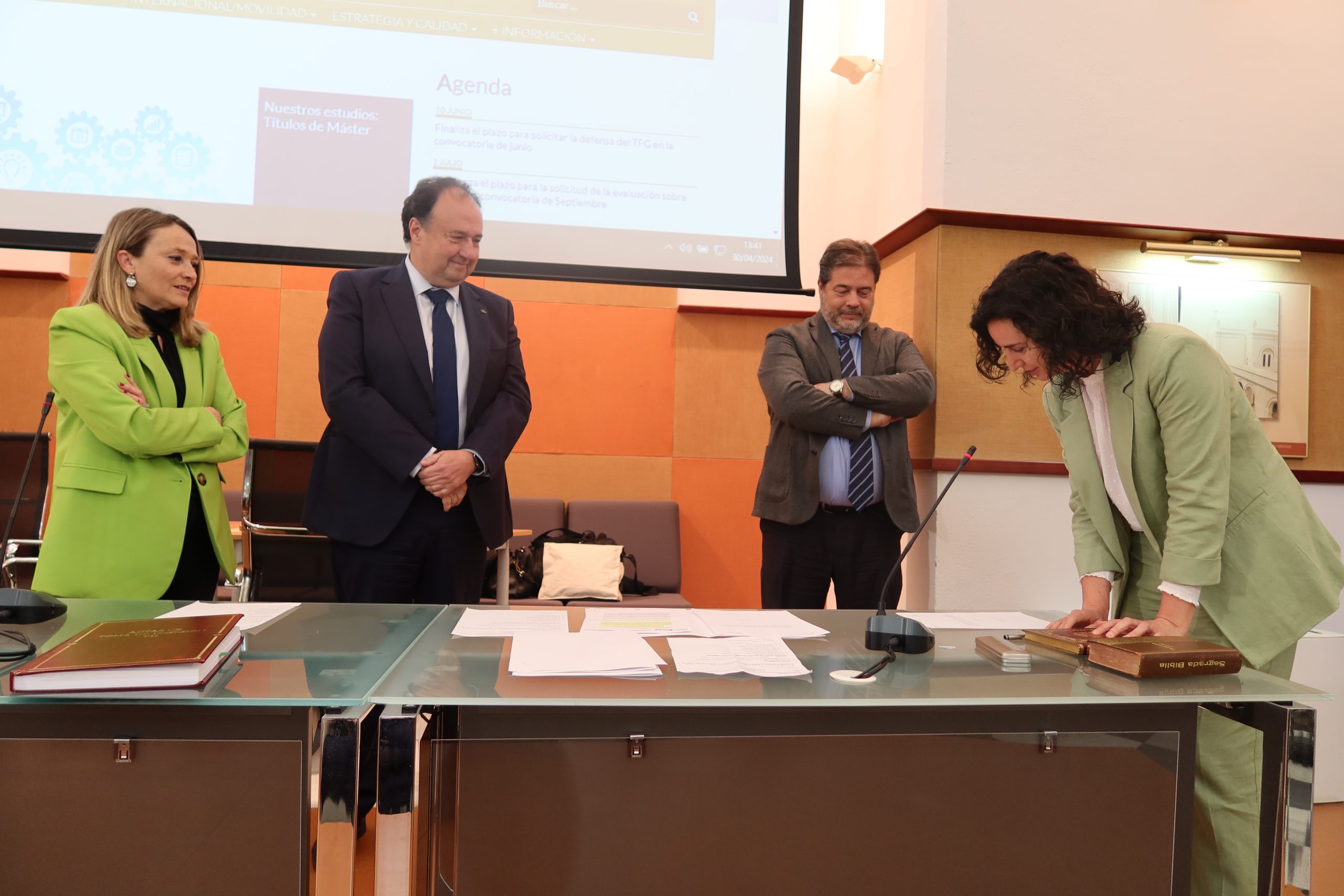 En primer lugar, han jurado/prometido sus cargos María Mercedes Soto García como directora de secretariado de Convenios y Transparencia y Jesús Barrena Martínez como director del departamento de Organización de Empresas.