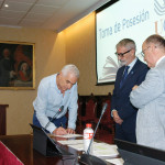 El rector de la Universidad de Cádiz, Francisco Piniella, junto con el vicesecretario General, Manuel Gómez, ha presidido hoy la toma de posesión de cargos académicos y profesorado en el salón de Grados de la Facultad de Medicina.