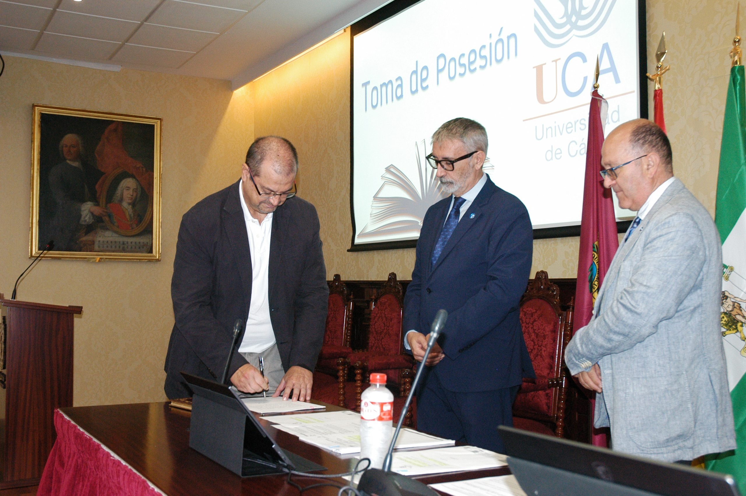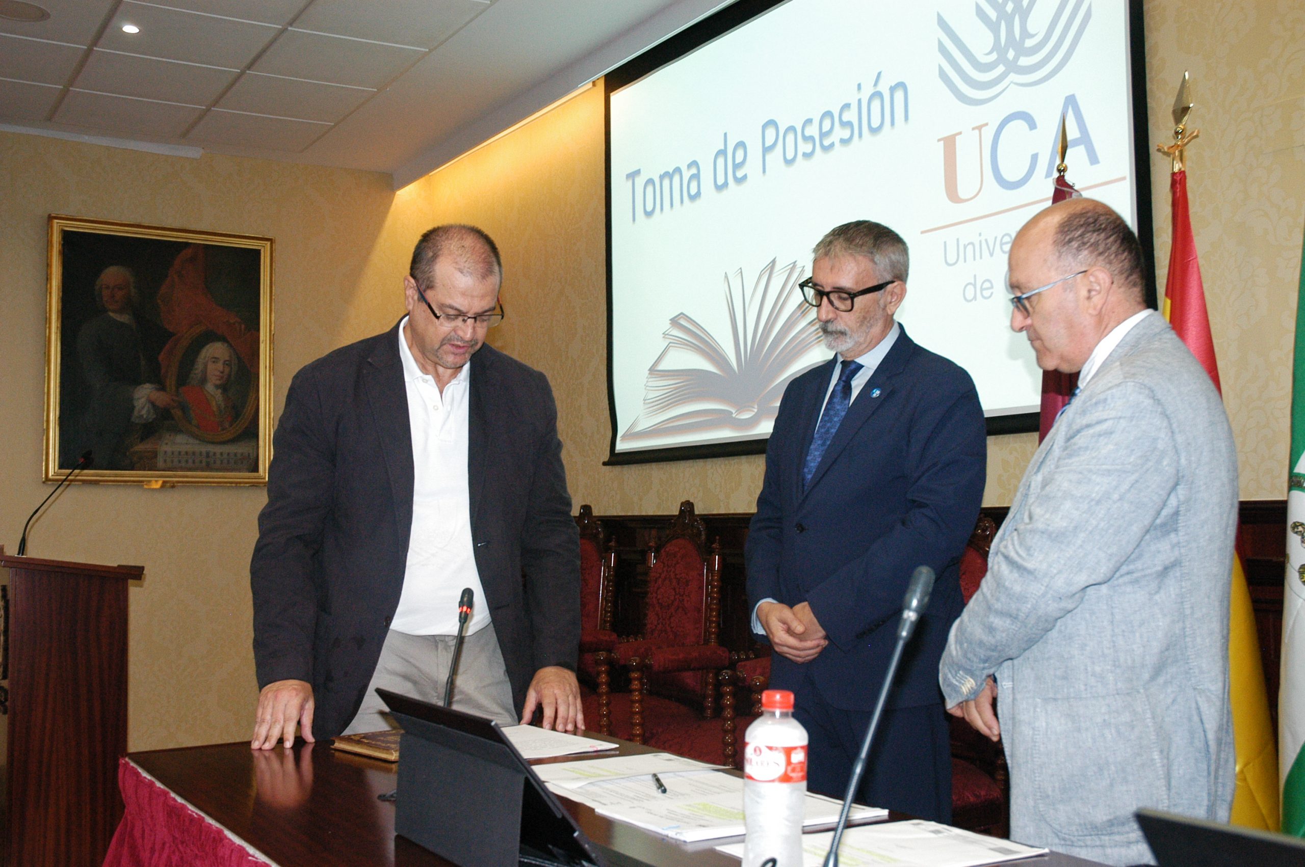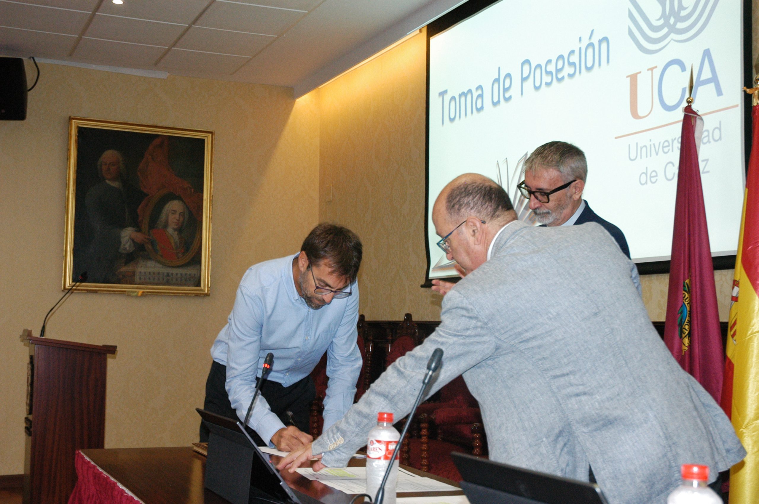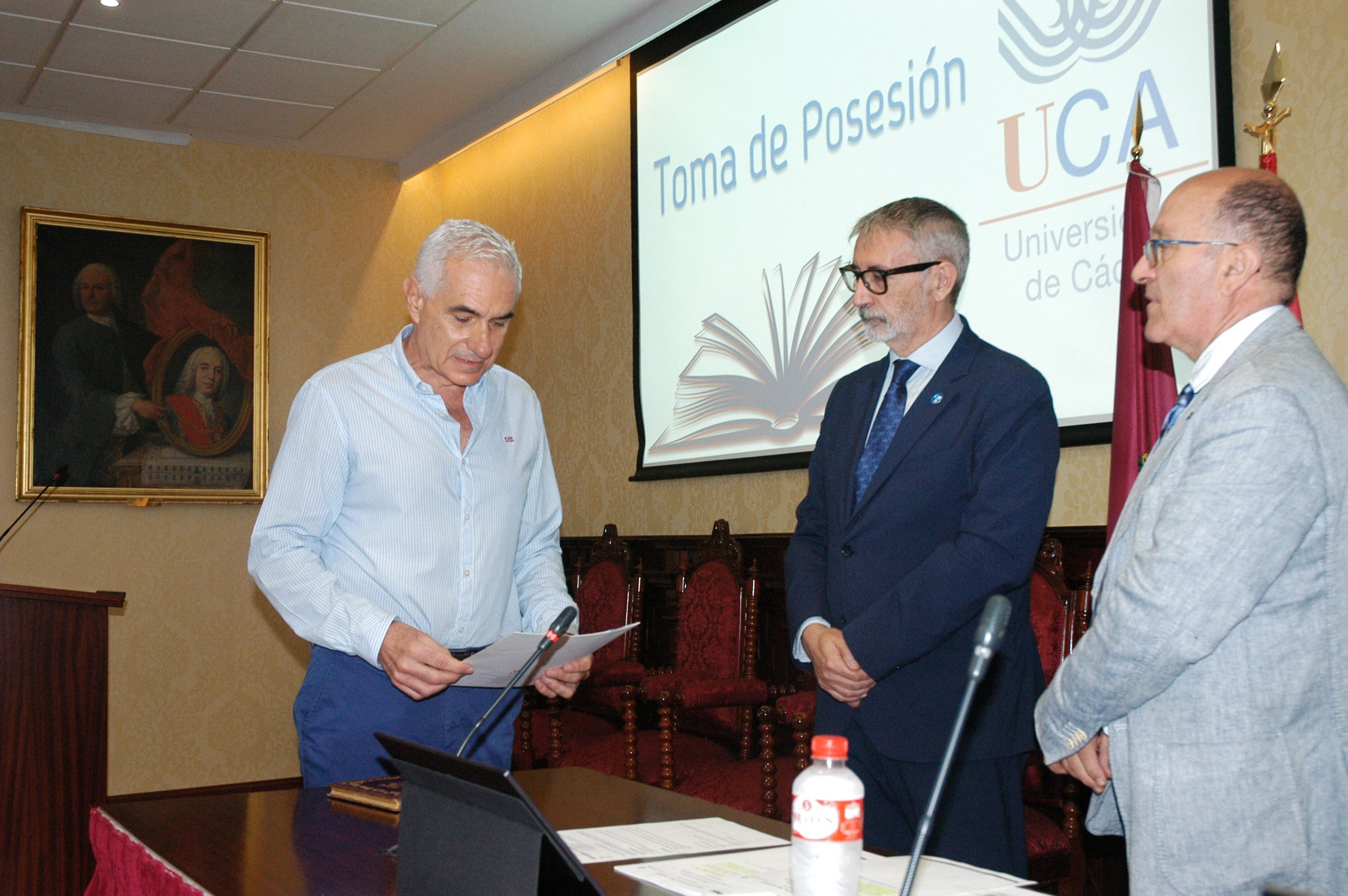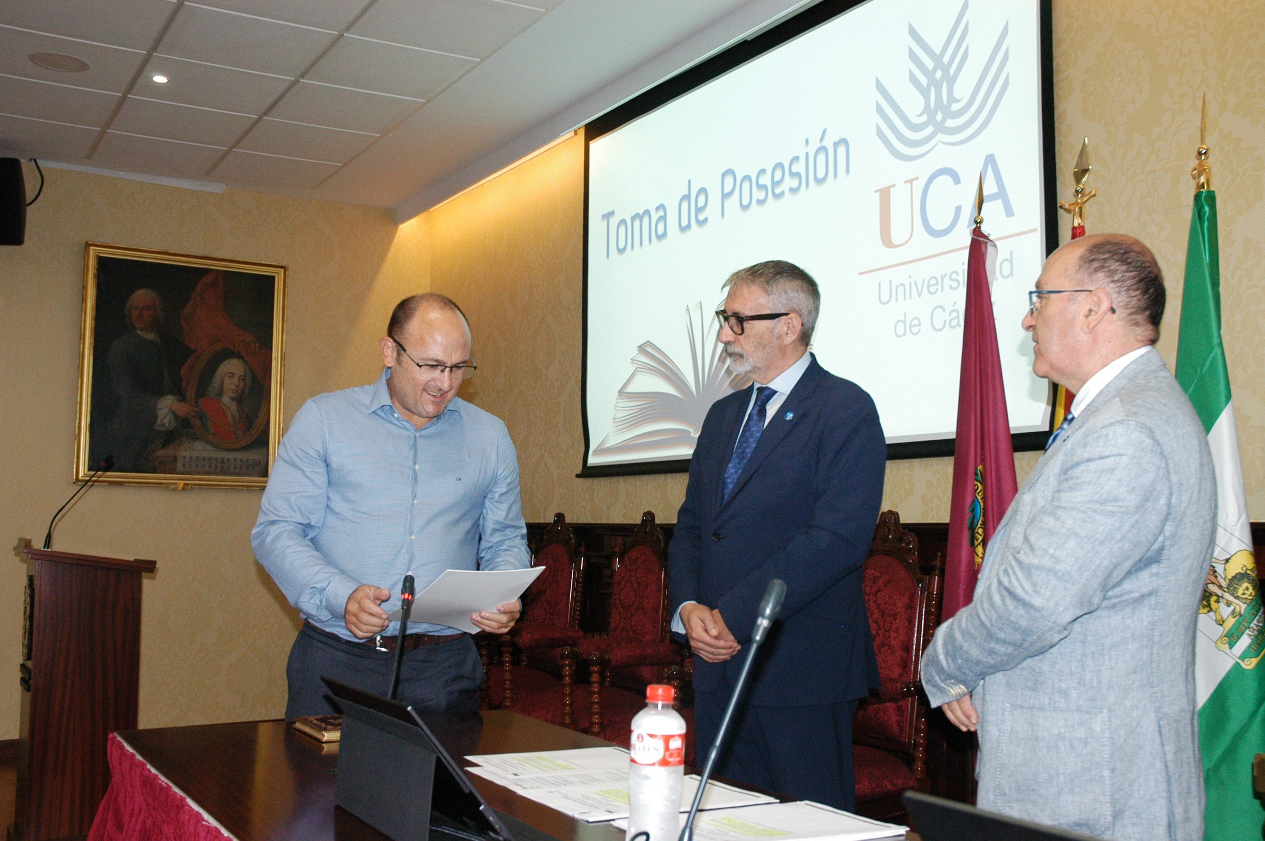 El rector de la Universidad de Cádiz, Francisco Piniella, junto con el vicesecretario General, Manuel Gómez, ha presidido hoy la toma de posesión de cargos académicos y profesorado en el salón de Grados de la Facultad de Medicina.