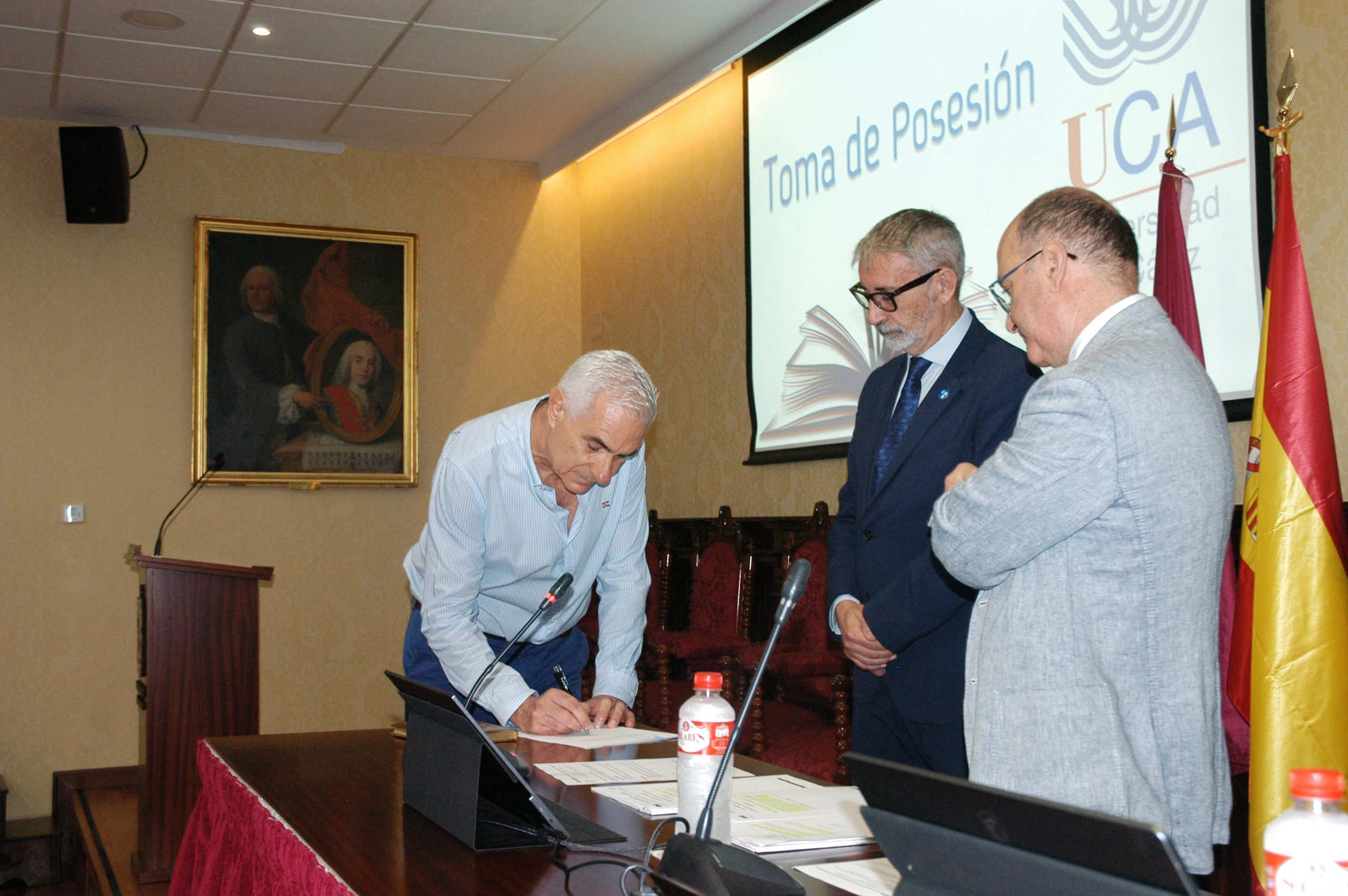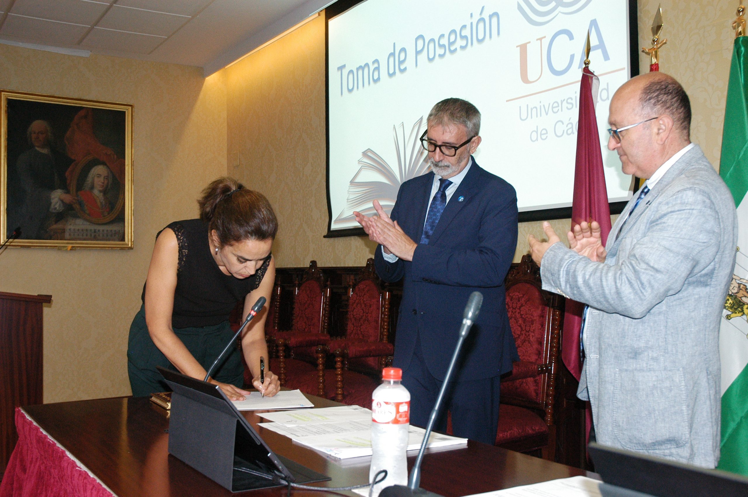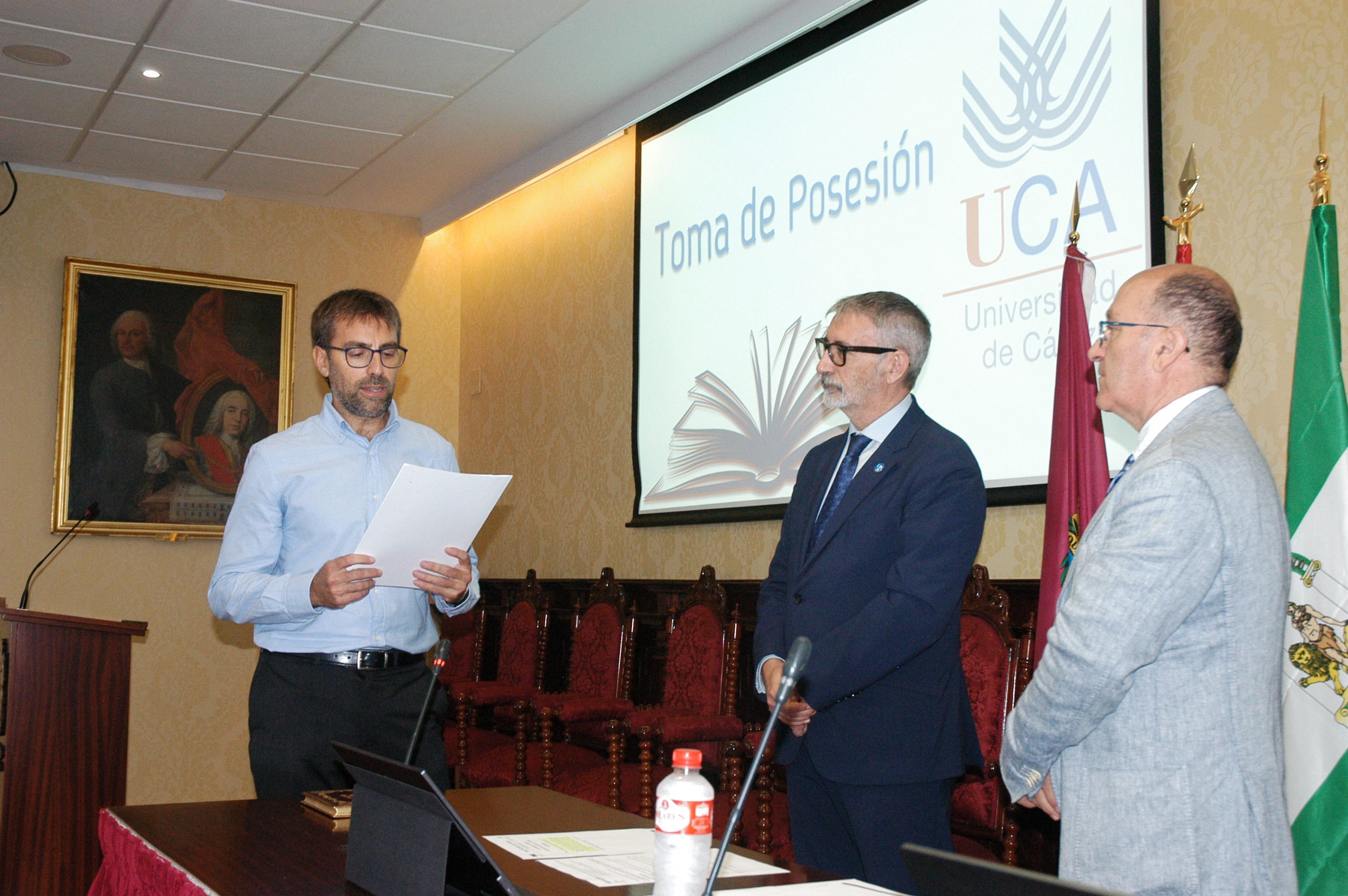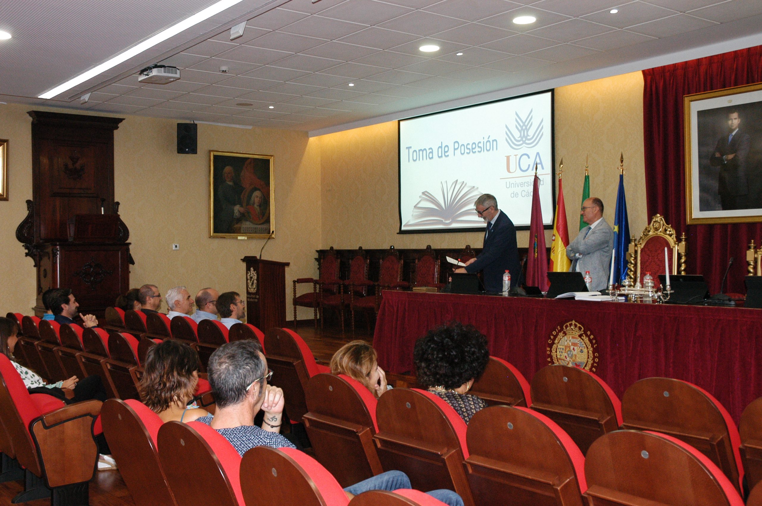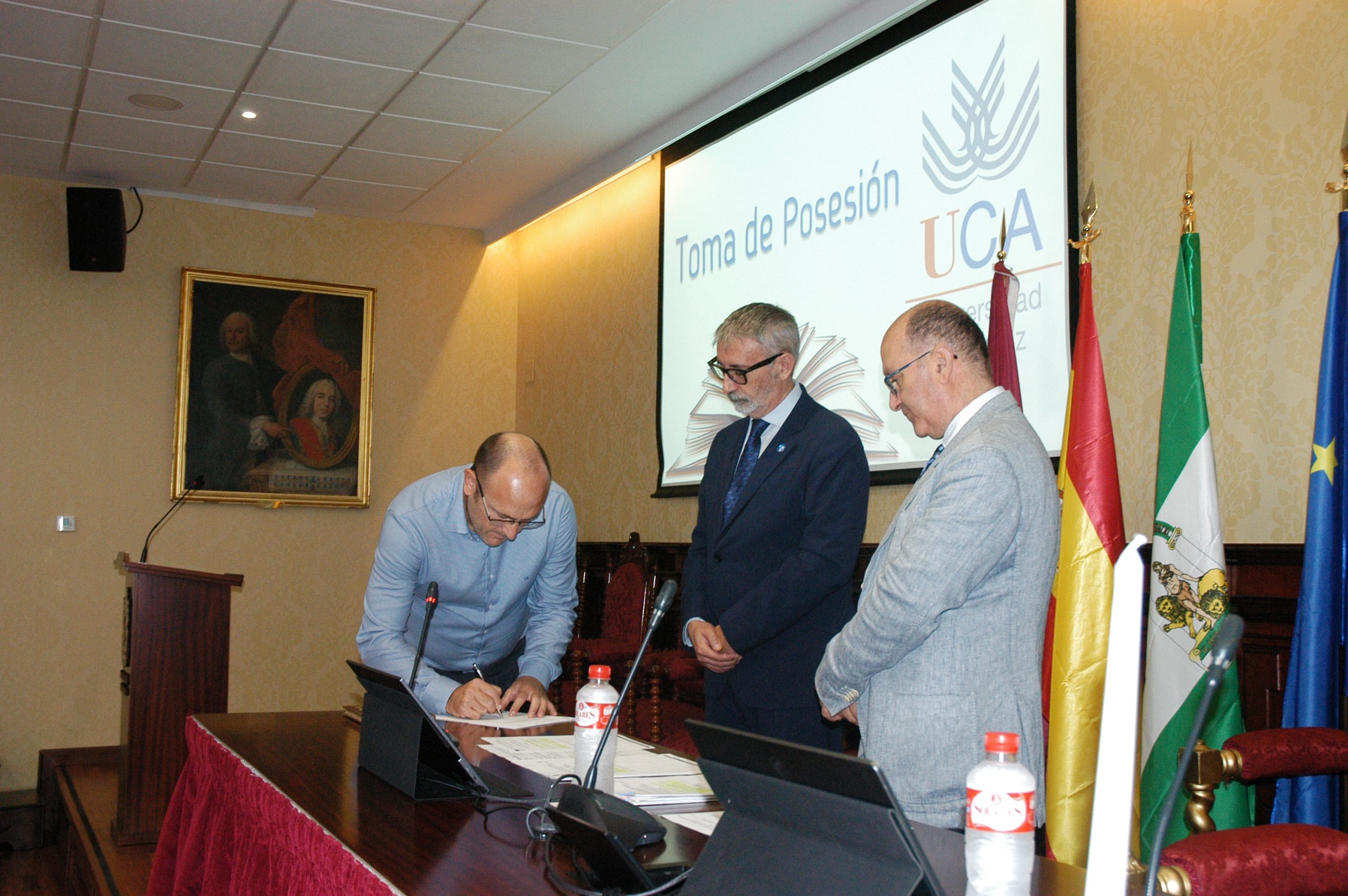 El rector de la Universidad de Cádiz, Francisco Piniella, junto con el vicesecretario General, Manuel Gómez, ha presidido hoy la toma de posesión de cargos académicos y profesorado en el salón de Grados de la Facultad de Medicina.