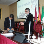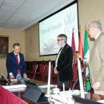 El rector de la Universidad de Cádiz, Francisco Piniella, en compañía del secretario General, José Justo Megías, ha presidido hoy la toma de posesión de catedrática de Universidad y cargos académicos en el salón de Grados de la Facultad de Medicina.
