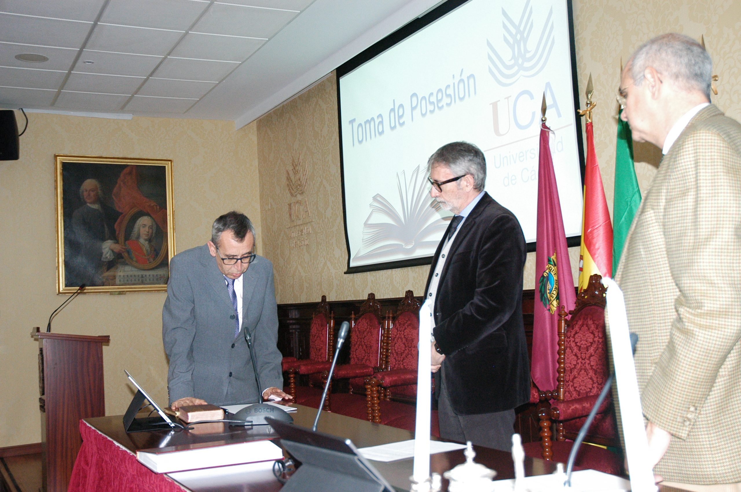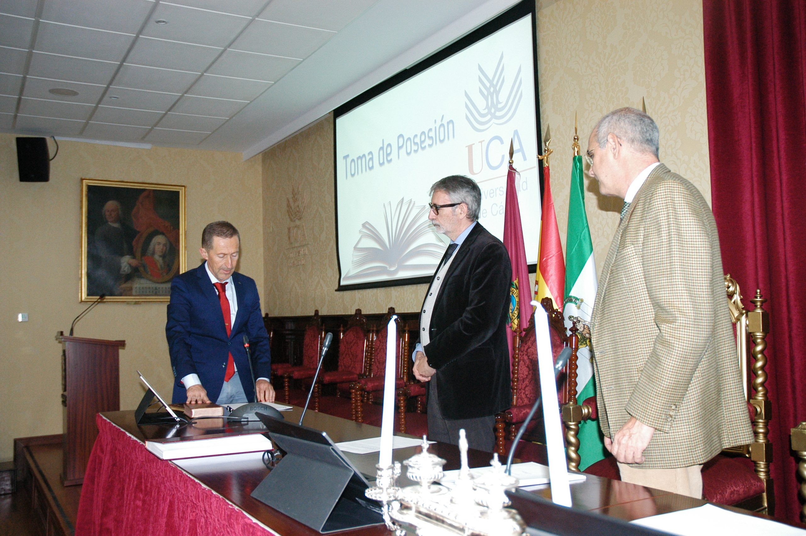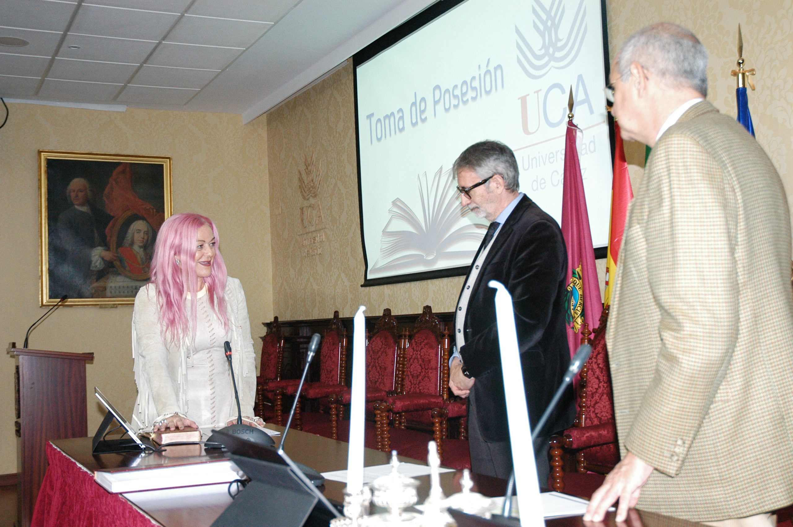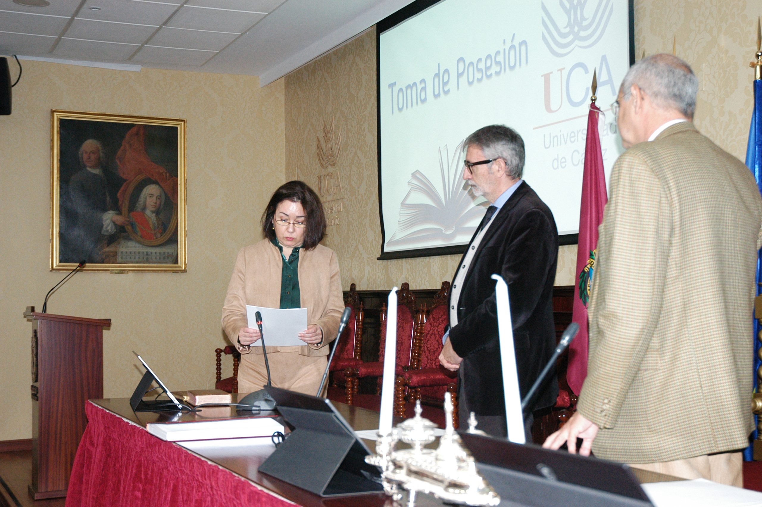 El rector de la Universidad de Cádiz, Francisco Piniella, en compañía del secretario General, José Justo Megías, ha presidido hoy la toma de posesión de catedrática de Universidad y cargos académicos en el salón de Grados de la Facultad de Medicina.