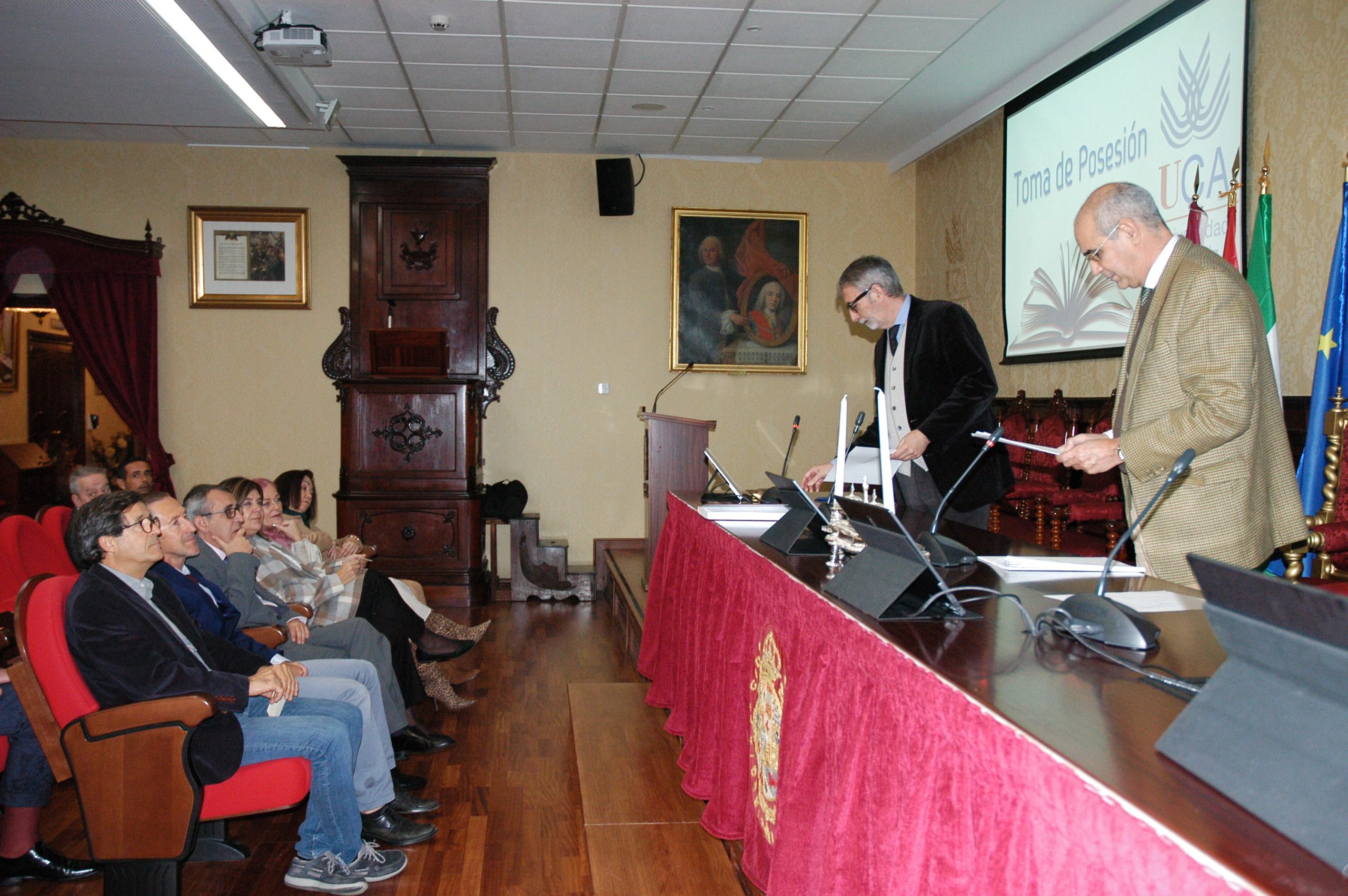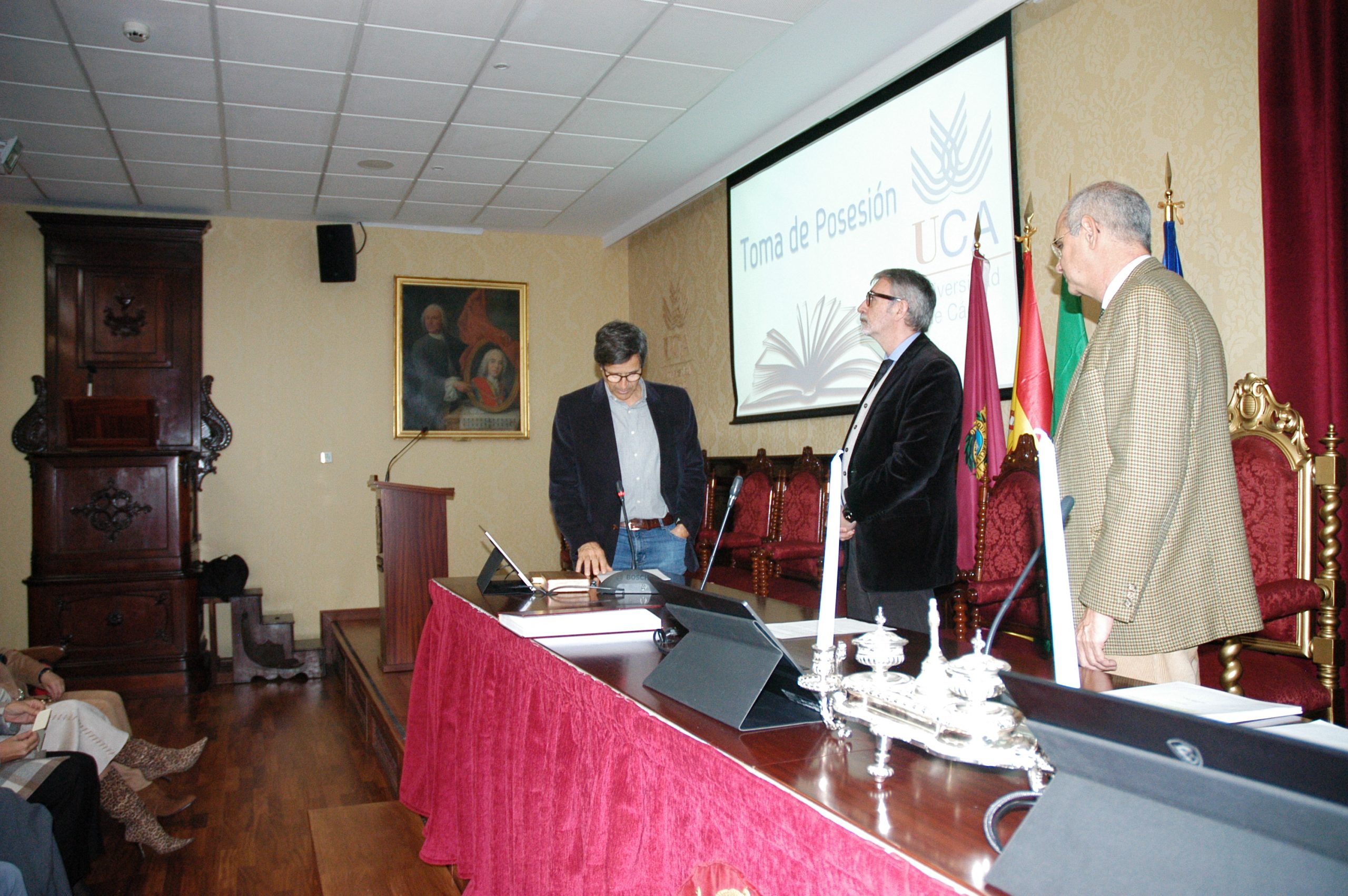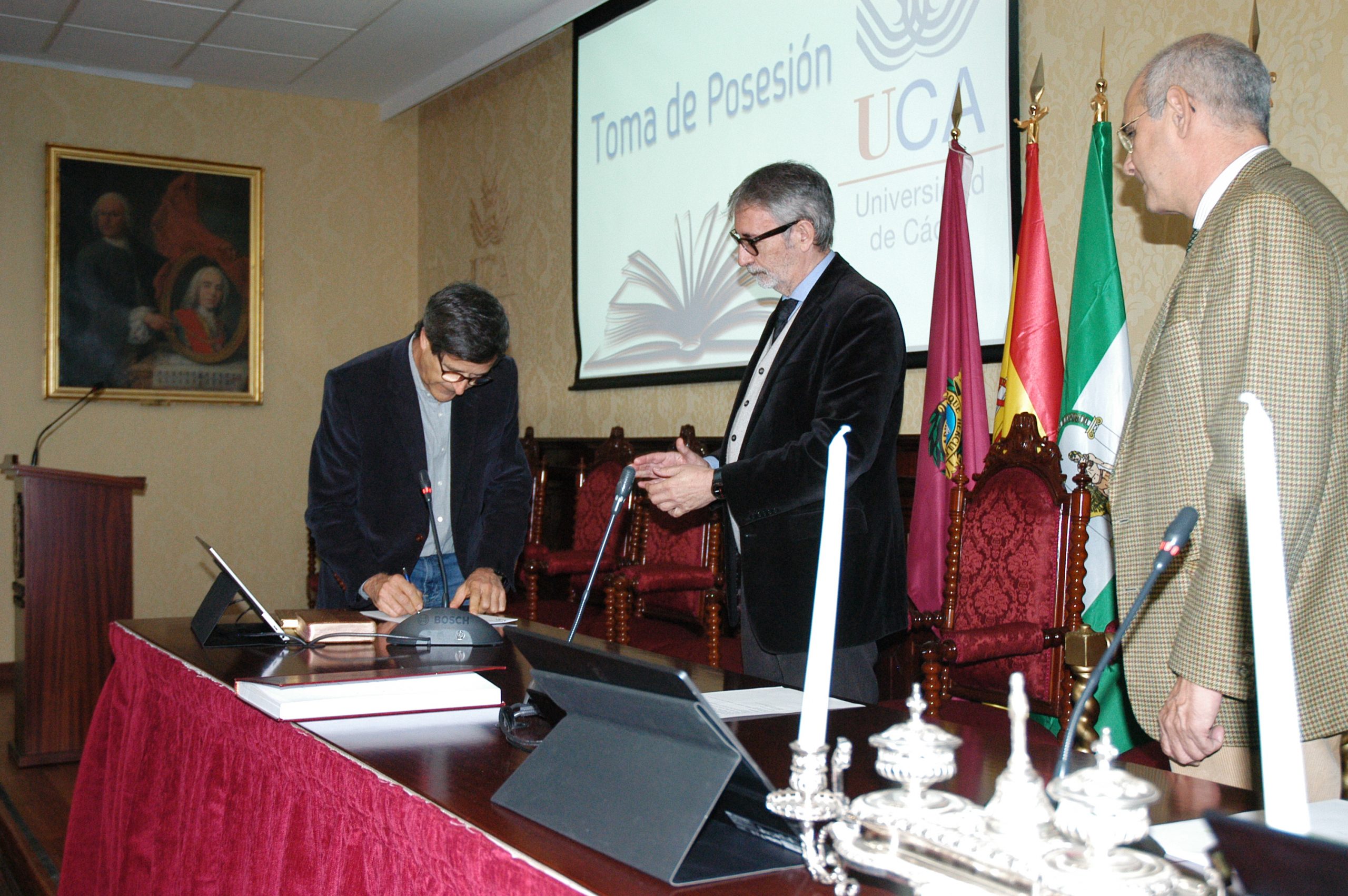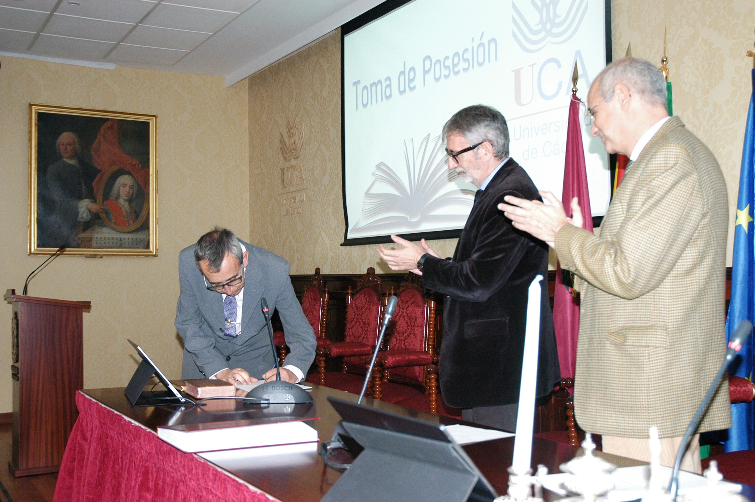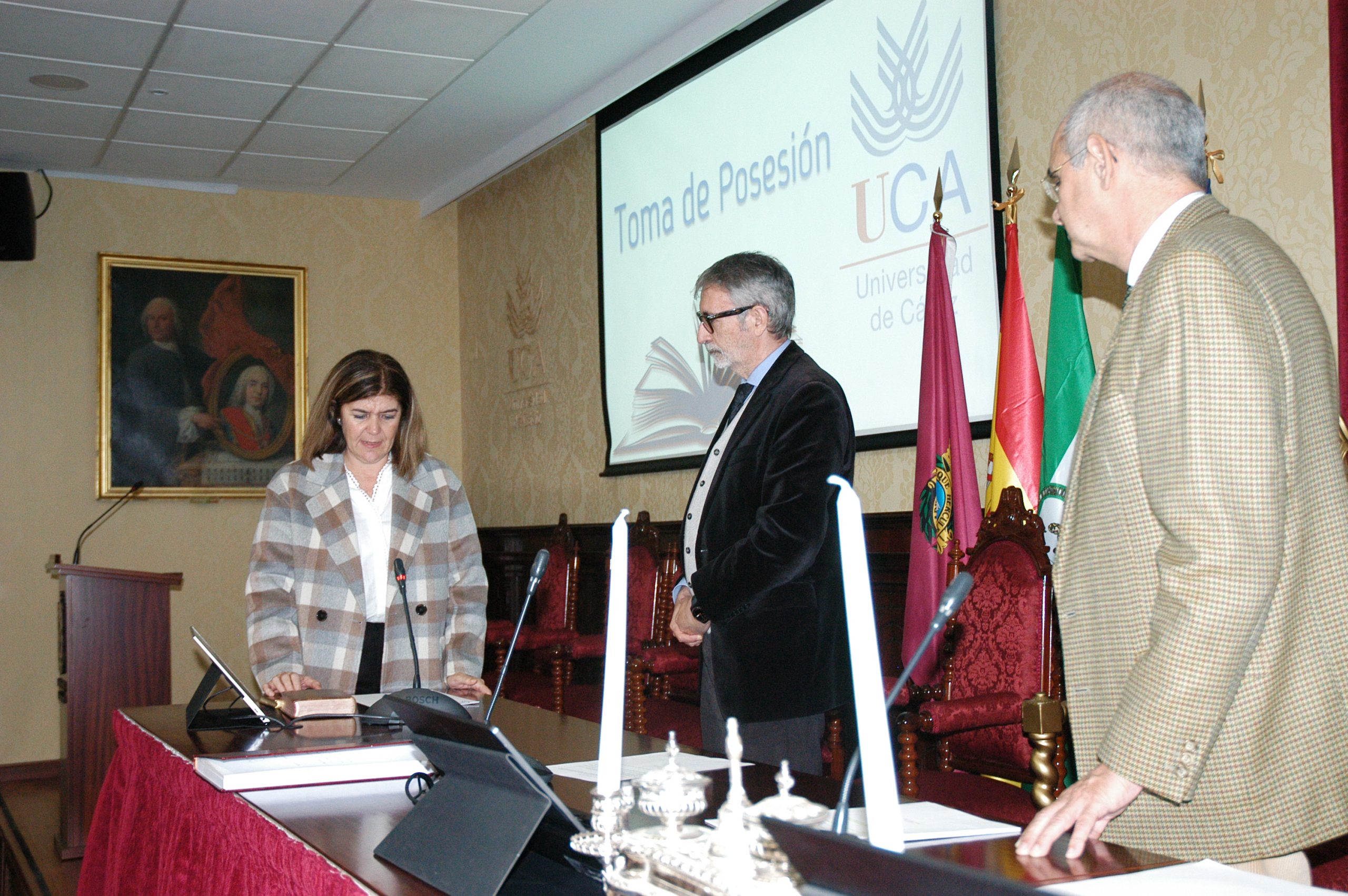El rector de la Universidad de Cádiz, Francisco Piniella, en compañía del secretario General, José Justo Megías, ha presidido hoy la toma de posesión de catedrática de Universidad y cargos académicos en el salón de Grados de la Facultad de Medicina.