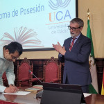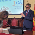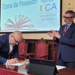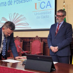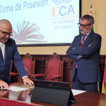 El rector de la Universidad de Cádiz, Francisco Piniella, en compañía del secretario General, José Justo Megías, ha presidido hoy la toma de posesión del nuevo vicerrector del Campus Bahía de Algeciras de la UCA