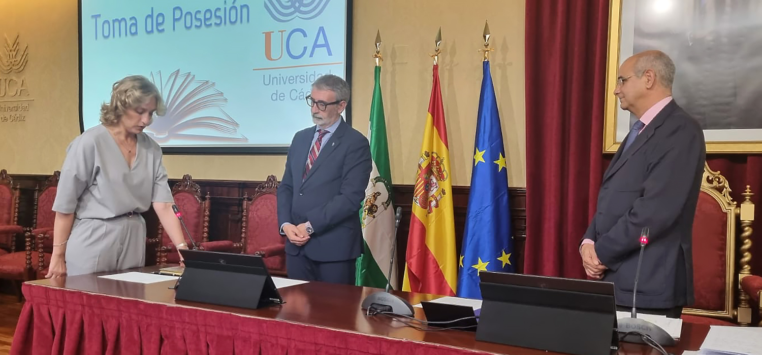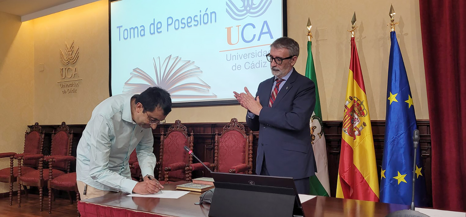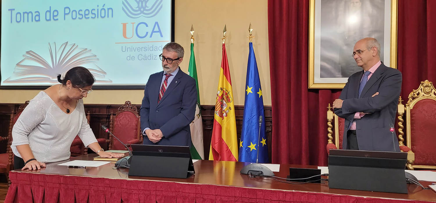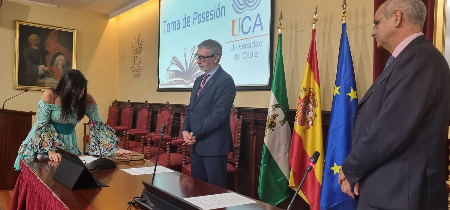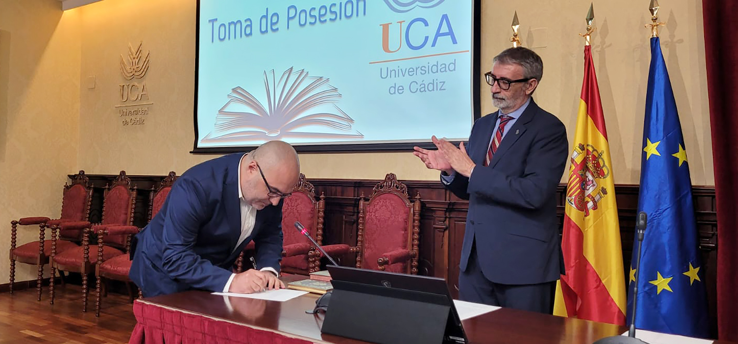 El rector de la Universidad de Cádiz, Francisco Piniella, en compañía del secretario General, José Justo Megías, ha presidido hoy la toma de posesión del nuevo vicerrector del Campus Bahía de Algeciras de la UCA