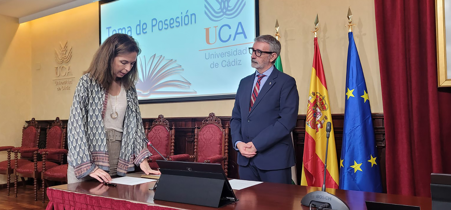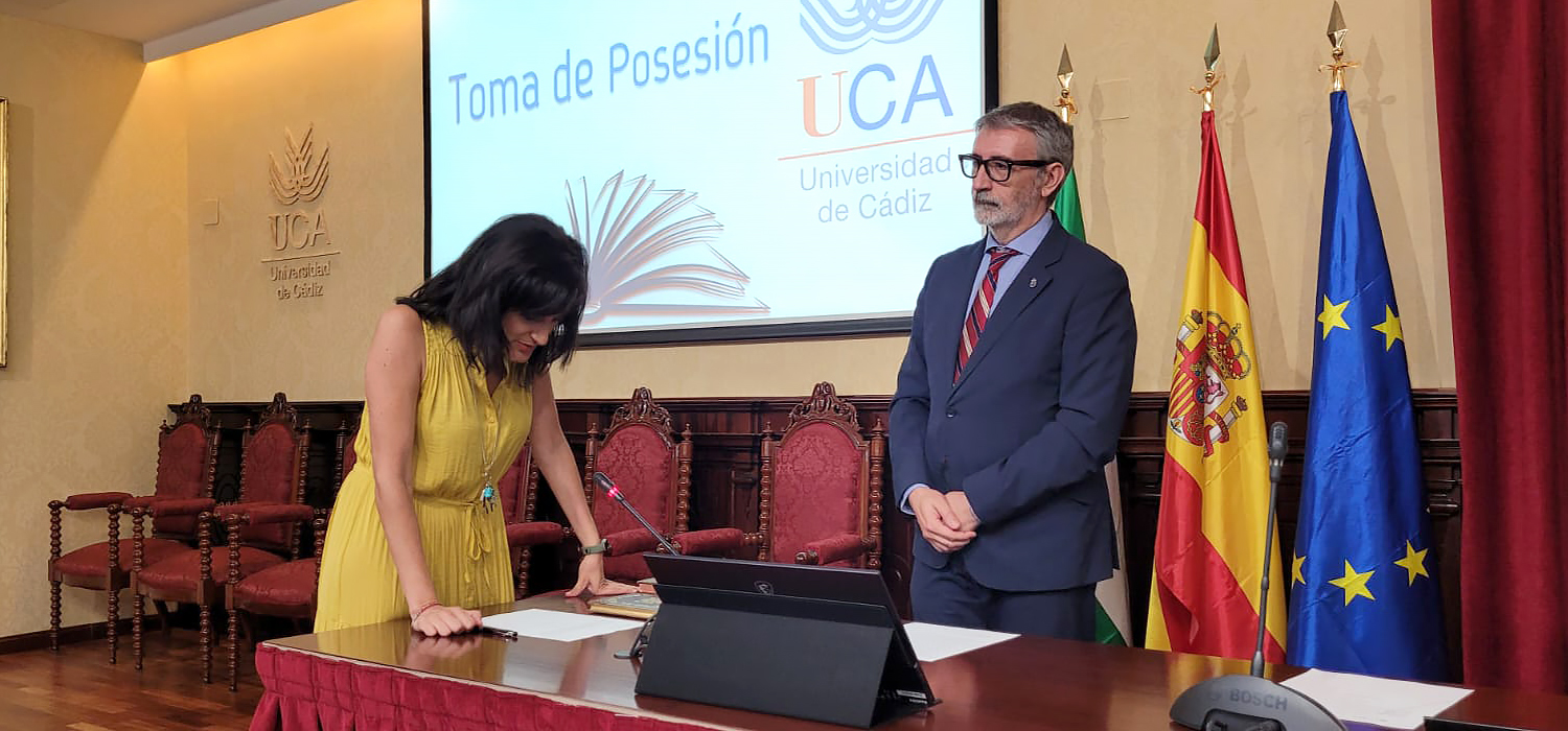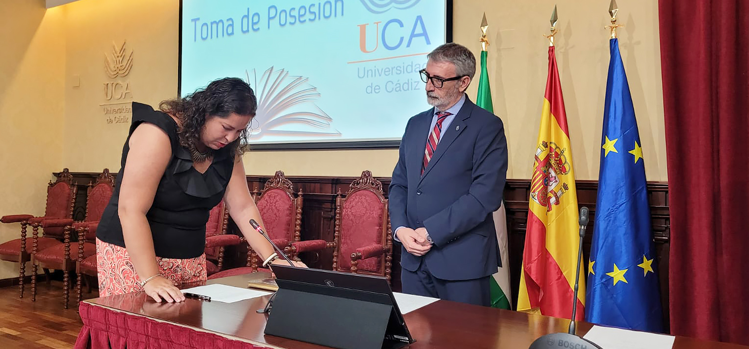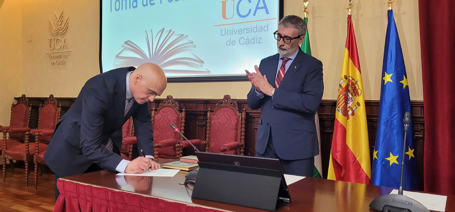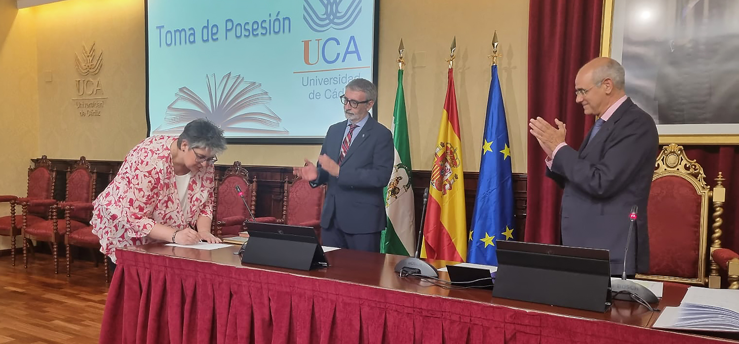 El rector de la Universidad de Cádiz, Francisco Piniella, en compañía del secretario General, José Justo Megías, ha presidido hoy la toma de posesión del nuevo vicerrector del Campus Bahía de Algeciras de la UCA