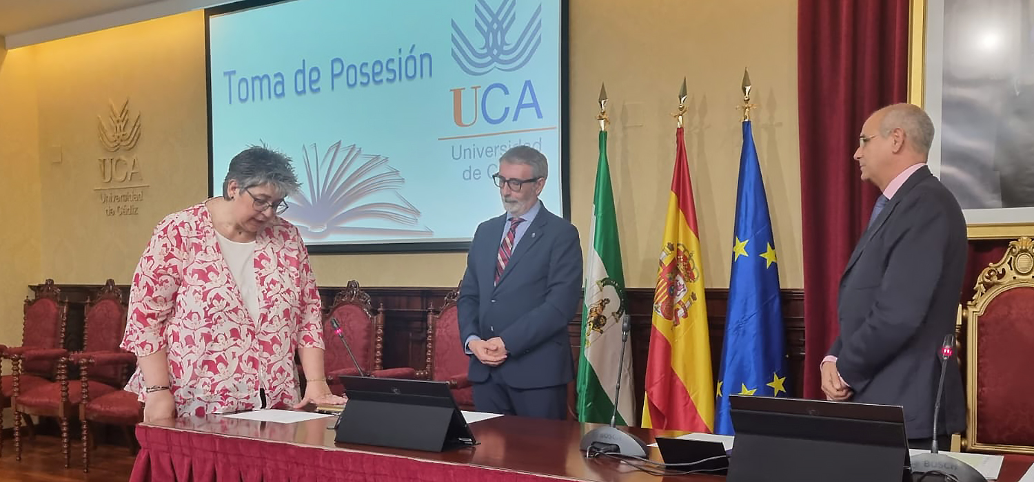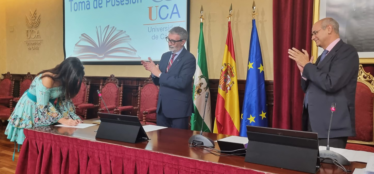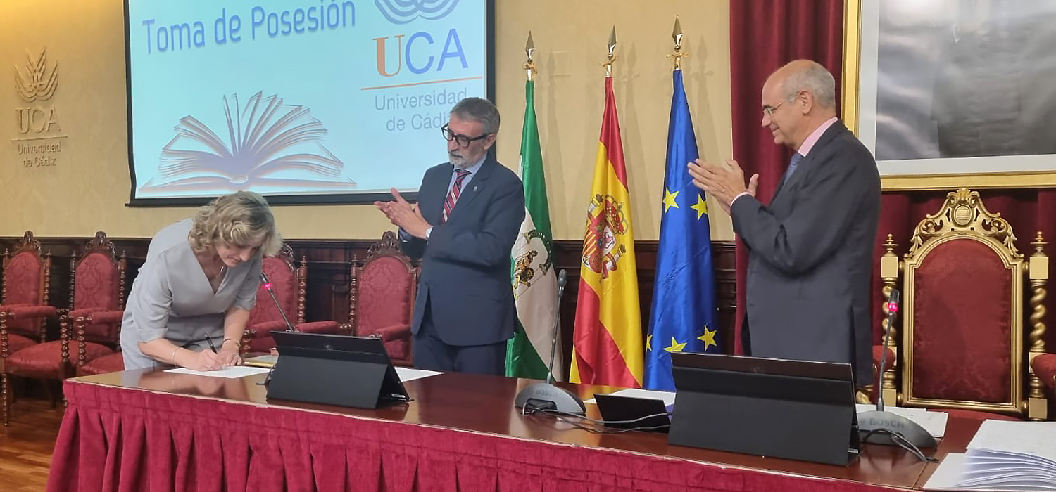 En primer lugar, ha jurado/prometido su cargo académico Jesús Verdú Baeza como vicerrector del Campus Bahía de Algeciras de la UCA. A continuación, han tomado posesión Margarita Castilla Barea y Susana Trasobares Llorente como catedrática del área de conocimiento de Derecho Civil y de Química Inorgánica, respectivamente.