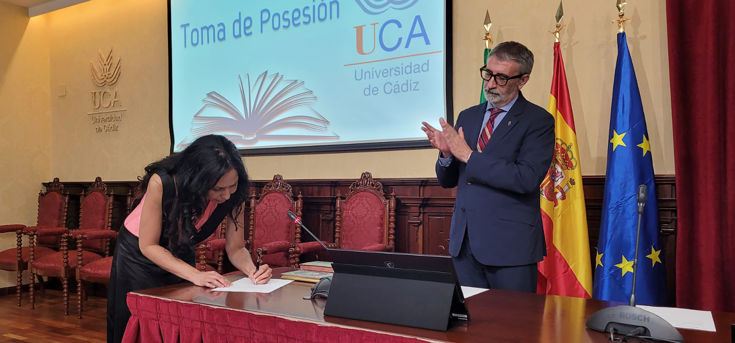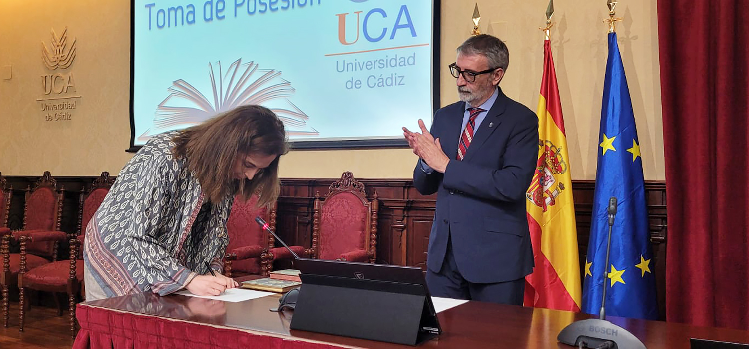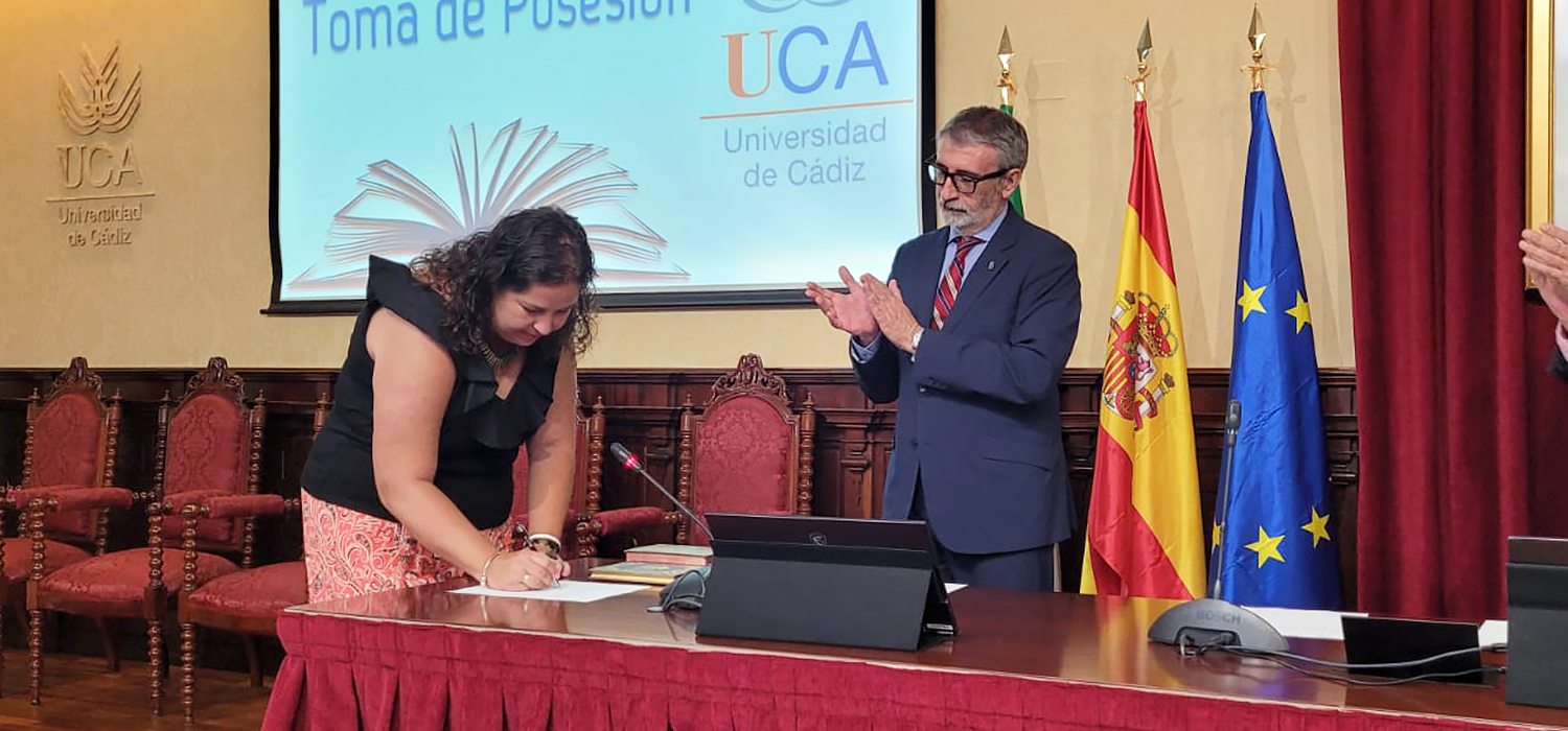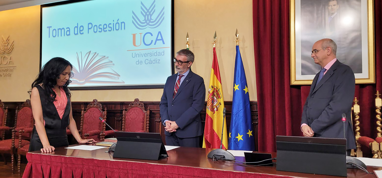 En primer lugar, ha jurado/prometido su cargo académico Jesús Verdú Baeza como vicerrector del Campus Bahía de Algeciras de la UCA. A continuación, han tomado posesión Margarita Castilla Barea y Susana Trasobares Llorente como catedrática del área de conocimiento de Derecho Civil y de Química Inorgánica, respectivamente.