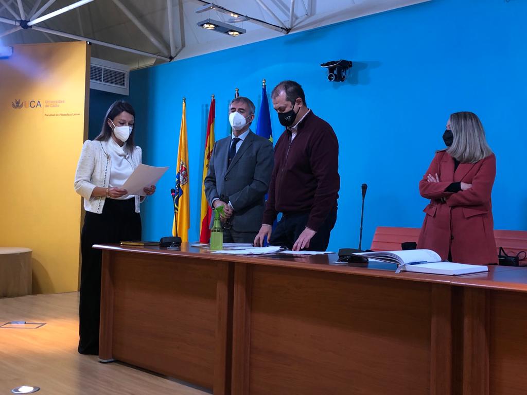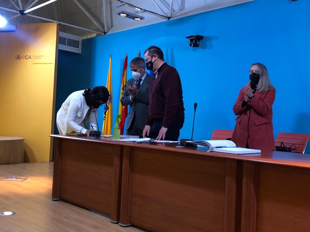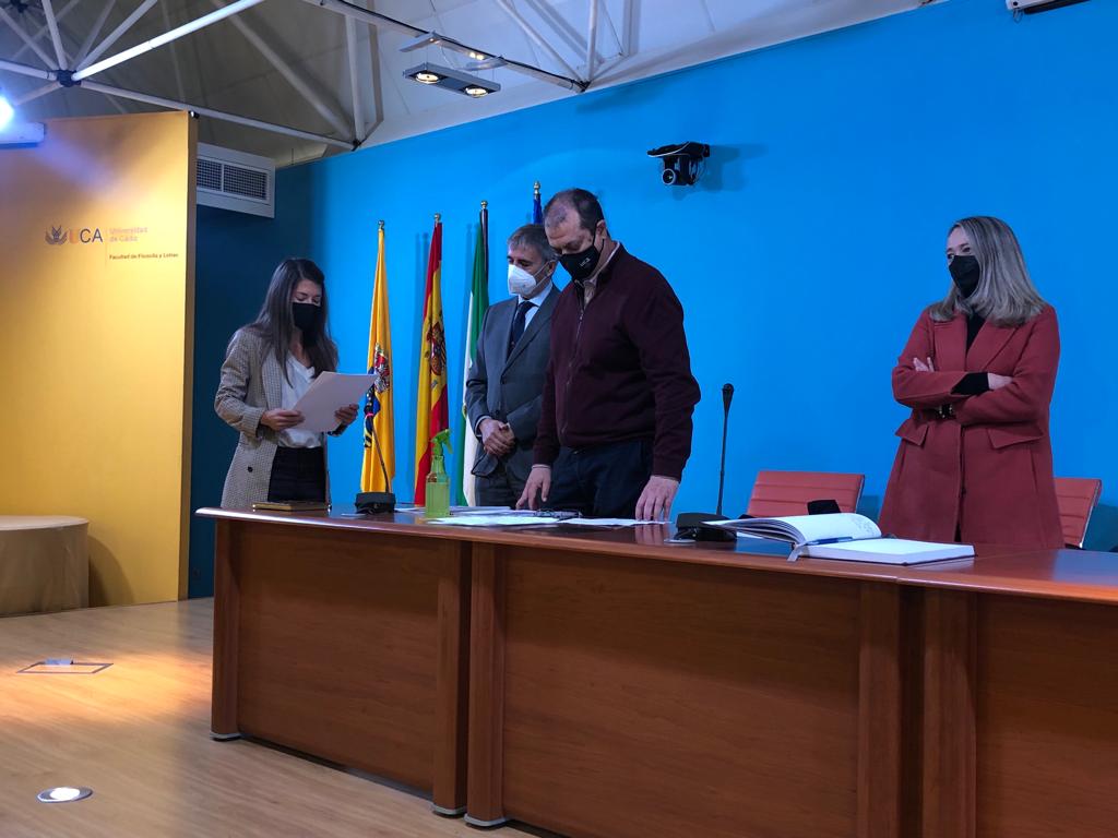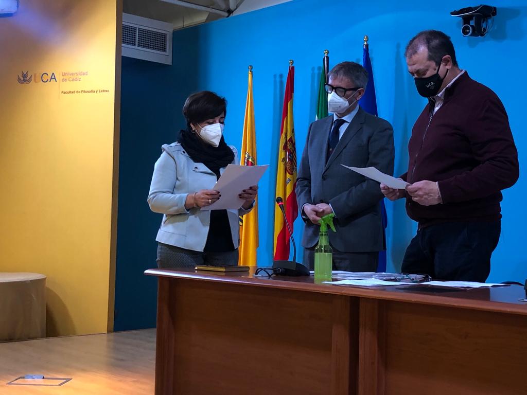 En primer lugar, han jurado/prometido sus cargos Mª Inmaculada Medina Bulo (catedrática de Lenguajes y Sistemas Informáticos), Víctor Manuel Palacios Macías (catedrático de Tecnología de Alimentos), y el profesorado titular: Juan Antonio Martos Sitcha (Zoología), José María Biedma Ferrer (Organización de Empresas), Rosa María Mateos Bernal (Bioquímica y Biología Molecular); Antonio Campos Caro (Genética); María Dolores Macías Sánchez (Ingeniería Química), María Cristina Senín Calderón (Personalidad, Evaluación y Tratamiento Psicológico); María Noemí Serrano Díaz (Didáctica y Organización Escolar), Antonio Valle Gallardo (Bioquímica y Biología Molecular) y Daniel Camiletti Moirón (Educación Física y Deportiva).