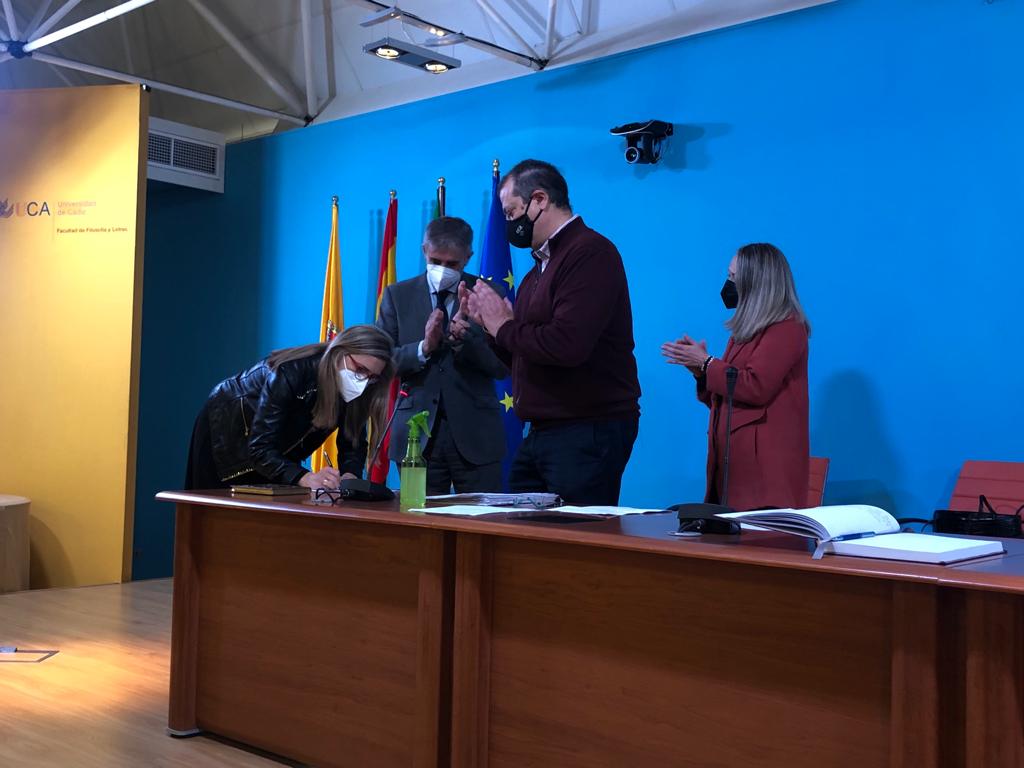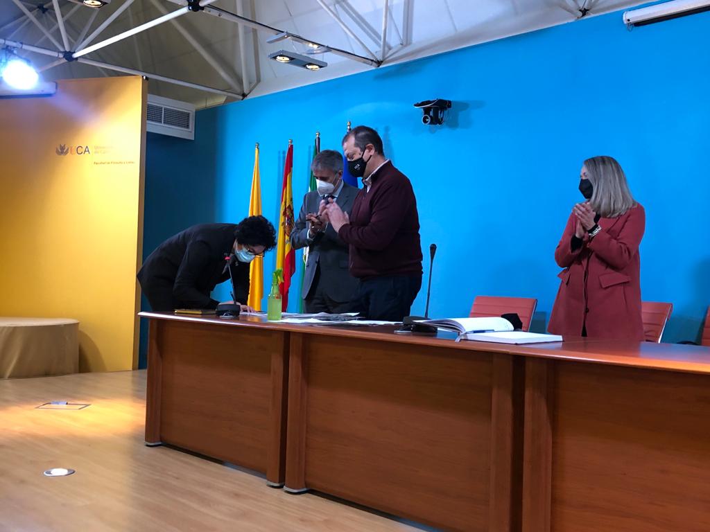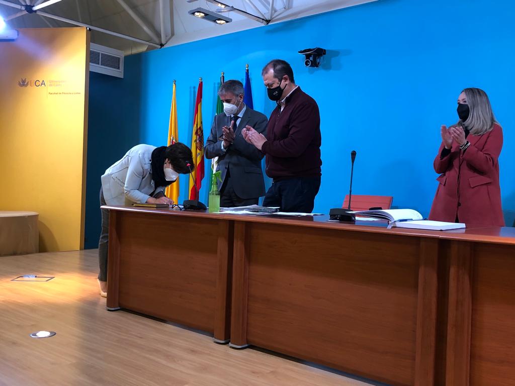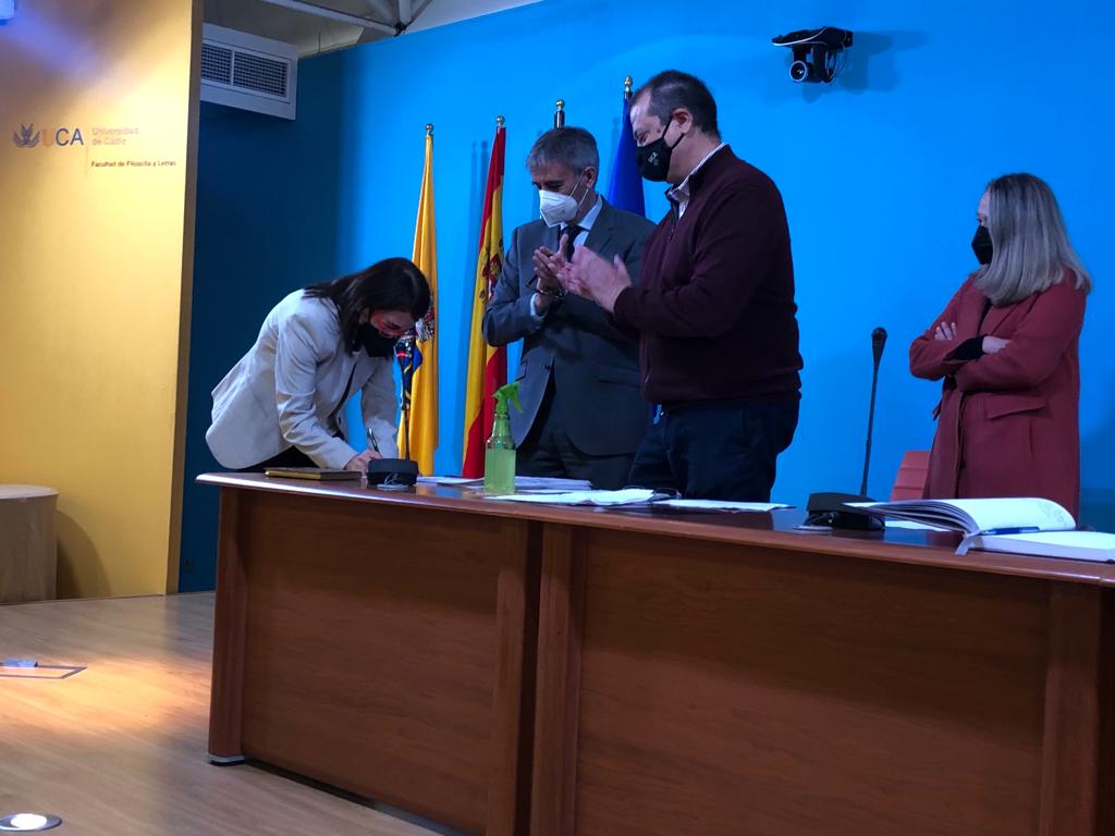 En primer lugar, han jurado/prometido sus cargos Mª Inmaculada Medina Bulo (catedrática de Lenguajes y Sistemas Informáticos), Víctor Manuel Palacios Macías (catedrático de Tecnología de Alimentos), y el profesorado titular: Juan Antonio Martos Sitcha (Zoología), José María Biedma Ferrer (Organización de Empresas), Rosa María Mateos Bernal (Bioquímica y Biología Molecular); Antonio Campos Caro (Genética); María Dolores Macías Sánchez (Ingeniería Química), María Cristina Senín Calderón (Personalidad, Evaluación y Tratamiento Psicológico); María Noemí Serrano Díaz (Didáctica y Organización Escolar), Antonio Valle Gallardo (Bioquímica y Biología Molecular) y Daniel Camiletti Moirón (Educación Física y Deportiva).