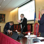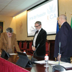 El rector de la Universidad de Cádiz, Francisco Piniella, en compañía del secretario General, José Justo Megías, ha presidido hoy la toma de posesión de dos cargos académicos, una catedrática y un par de catedráticos en el salón de Grados de la Facultad de Medicina.