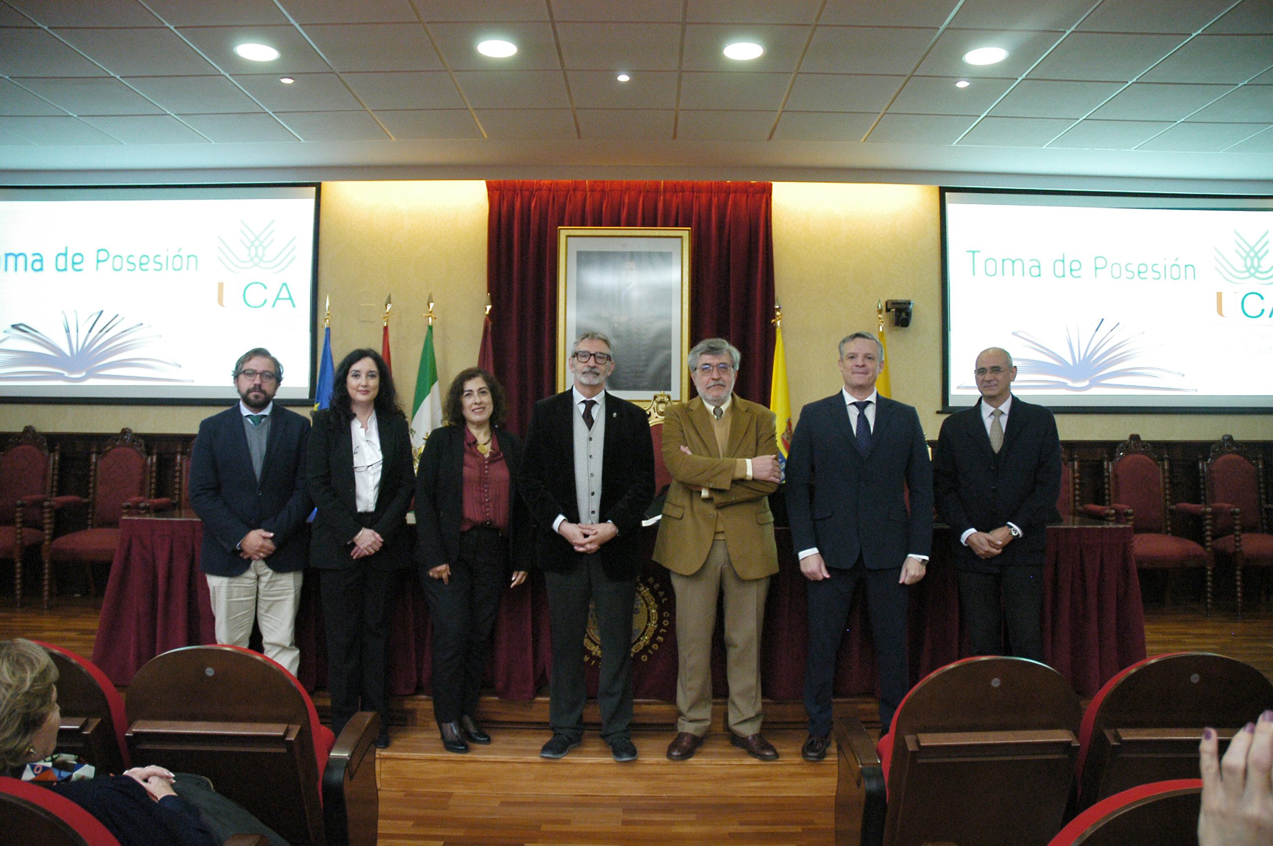 El rector de la Universidad de Cádiz, Francisco Piniella, en compañía del secretario General, José Justo Megías, ha presidido hoy la toma de posesión de dos cargos académicos, una catedrática y un par de catedráticos en el salón de Grados de la Facultad de Medicina.