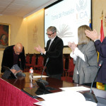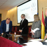 El rector de la Universidad de Cádiz, Francisco Piniella, en compañía del secretario General, José Justo Megías, y la gerente, Mariví Martínez, ha presidido hoy la toma de posesión de dos catedráticas y cuatro funcionarios del Personal de Administración y Servicios en el salón de Grados de la Facultad de Medicina.