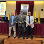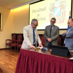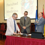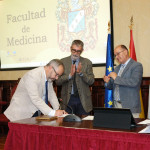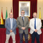 El rector de la Universidad de Cádiz, Francisco Piniella, junto con el secretario General en funciones, Manuel Gómez, ha presidido hoy la toma de posesión del profesor y actual vicerrector de Cultura de la Universidad de Cádiz, José María Pérez Monguió, como catedrático de Universidad en el área de Derecho Administrativo. El acto se ha celebrado en el salón de Grados de la Facultad de Medicina en Cádiz.